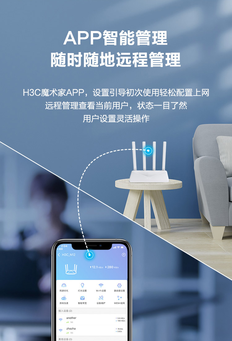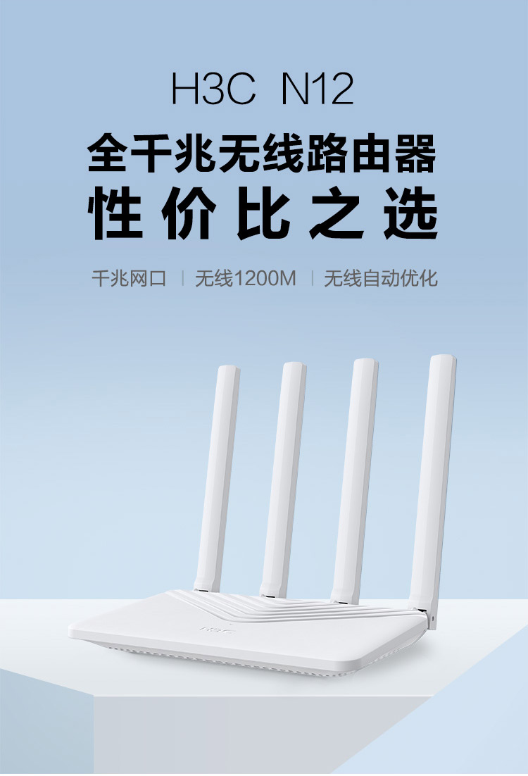 - 商品名称:华三(H3C)H3C N12 双千兆路由器穿墙增强型 家用游戏无线路由器 智能5G双频1200M 千兆端口光纤宽带