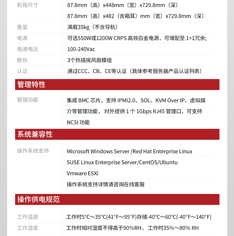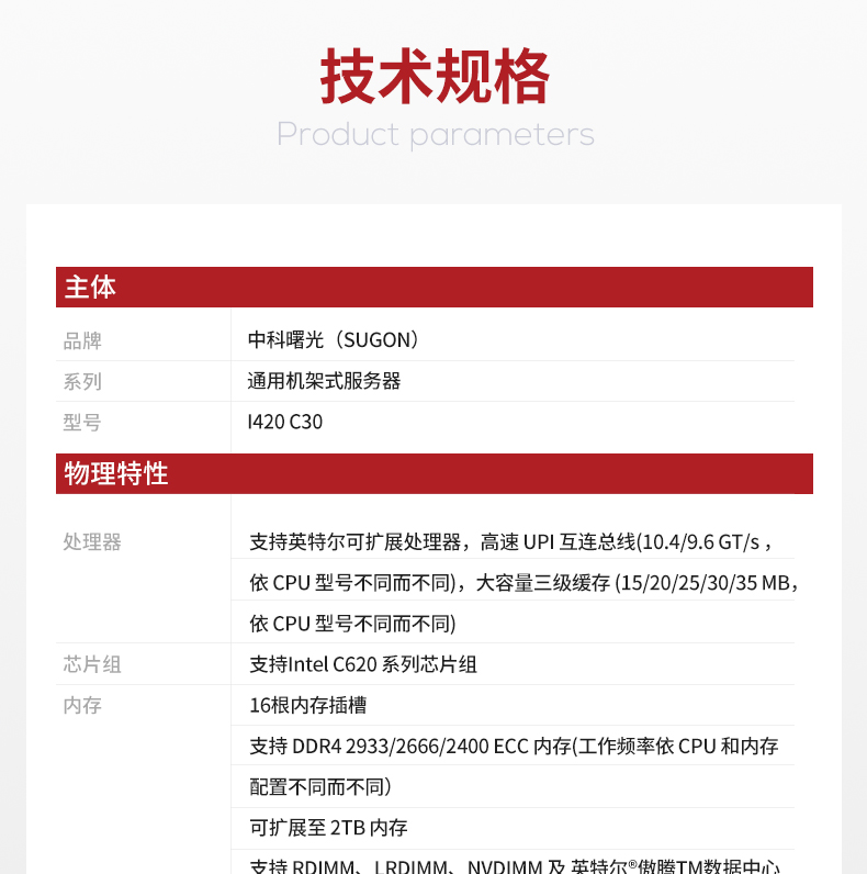 商品名称:中科曙光(Sugon)曙光I420-C30支持两颗4110/2*16G/2*1.2T硬盘/550W冗余电源服务器主机2U机架式