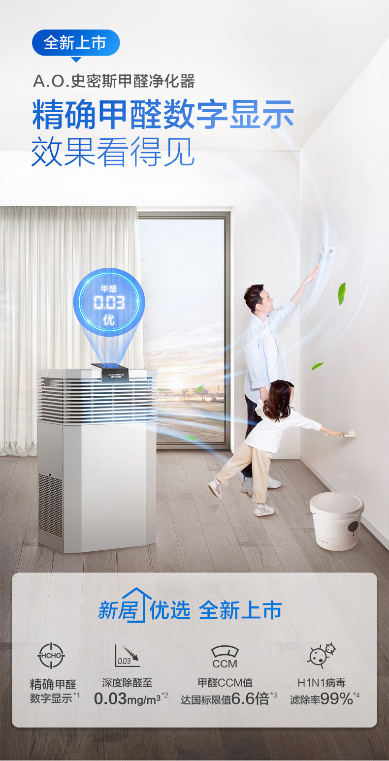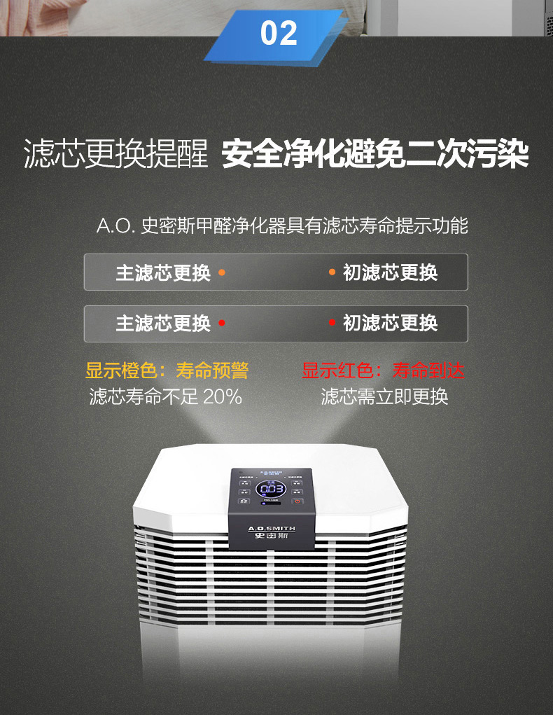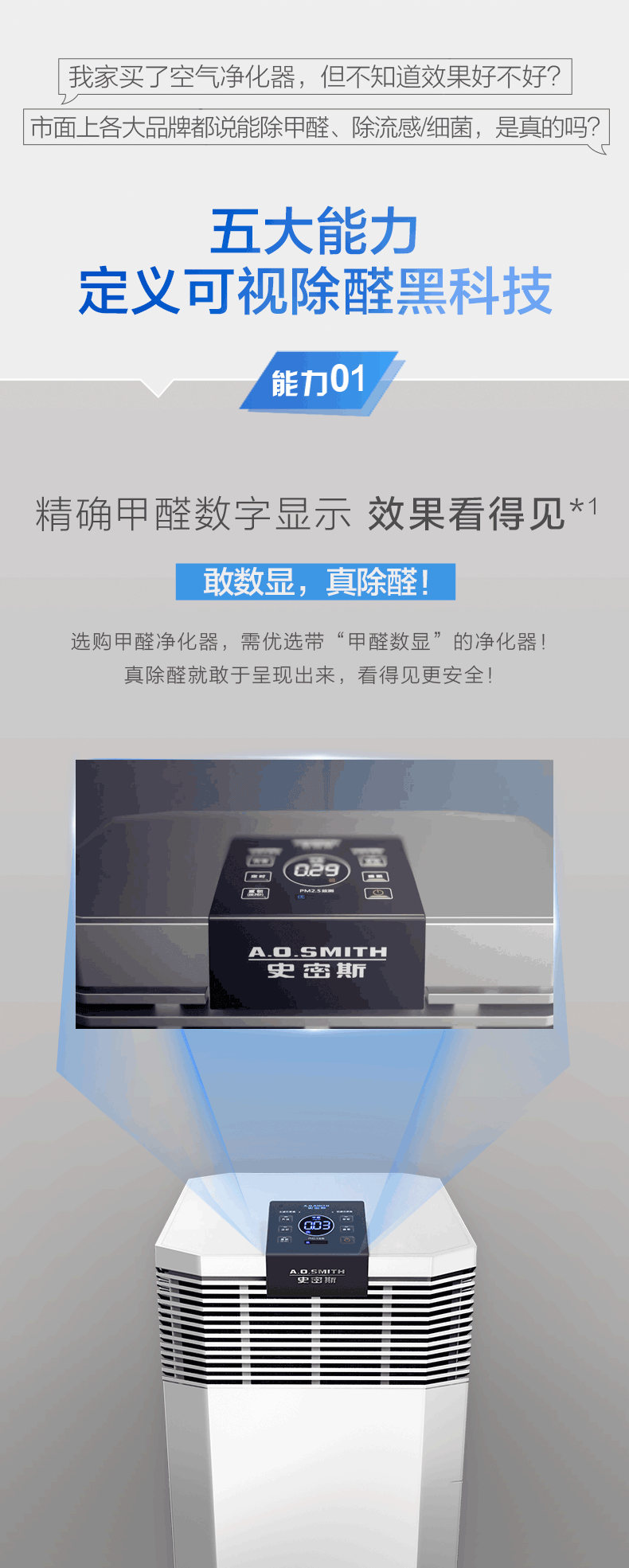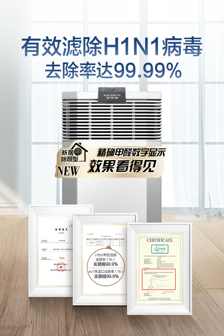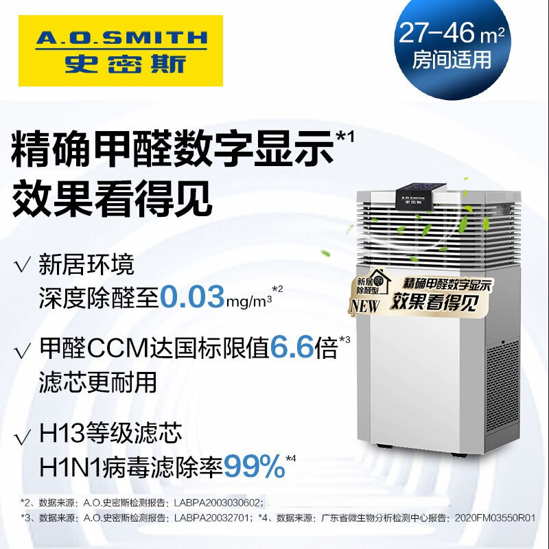 - 商品名称:A.O.史密斯 【新品上市】甲醛数显 空气净化器 家用 深度除甲醛 除细菌病毒 除异味 PM2.5雾霾 JF1568