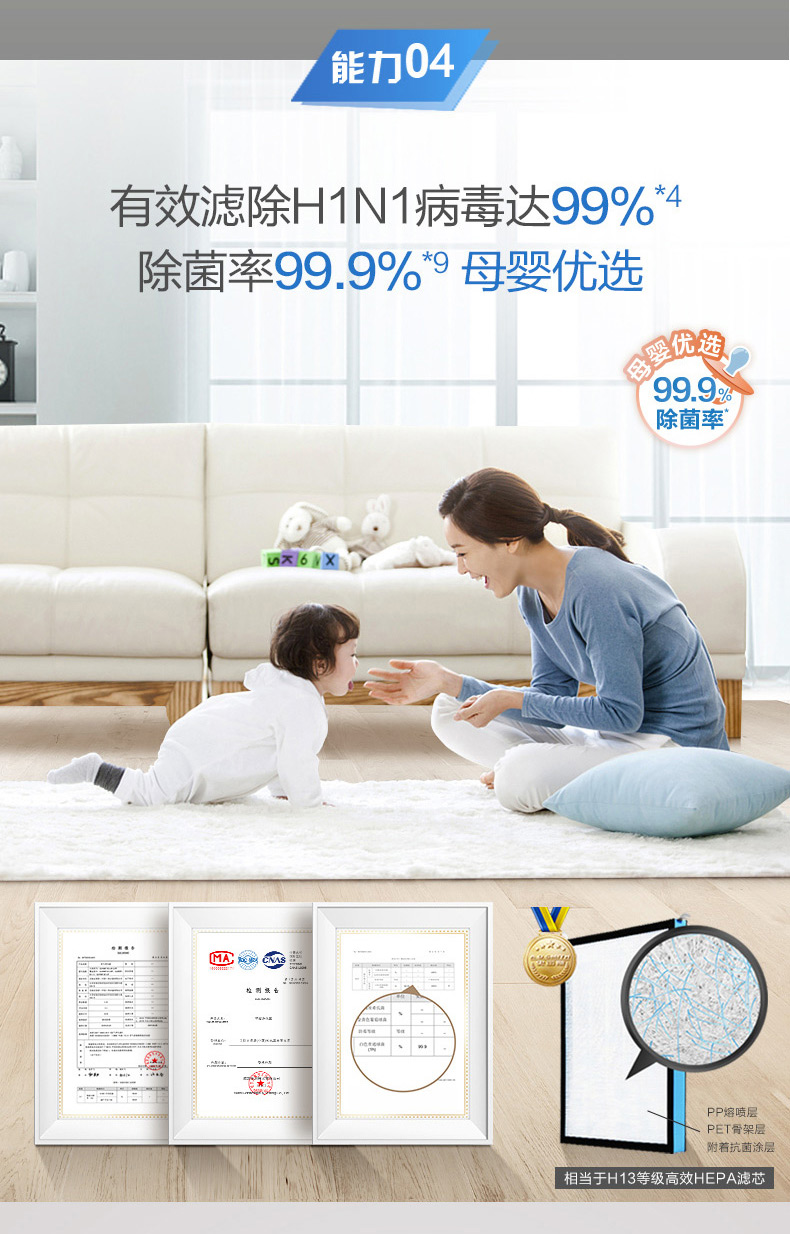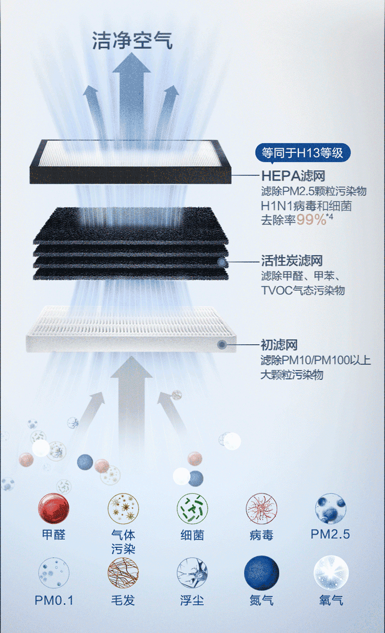 - 过滤污染物类型:甲醛;PM2.5;细菌;病毒