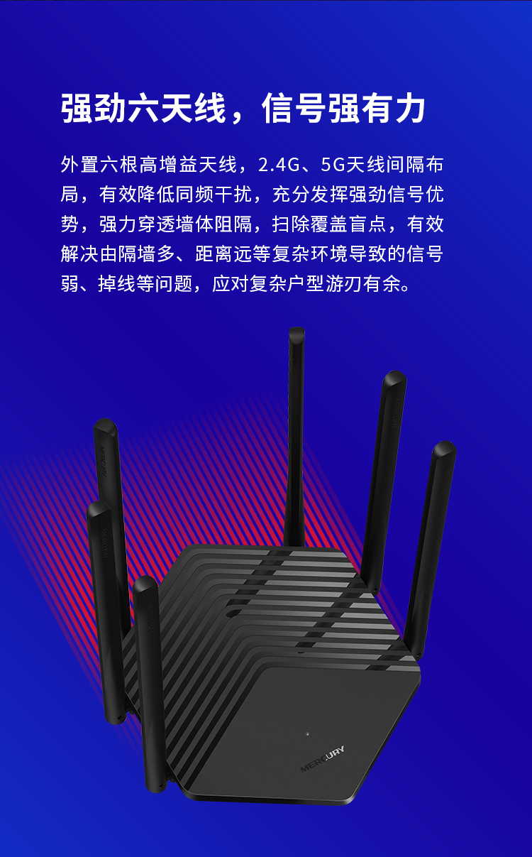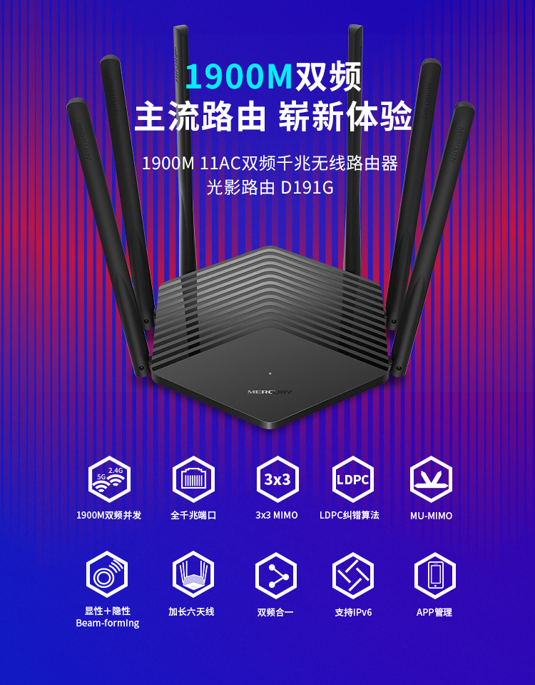水星(MERCURY)D191G 双频全千兆无线wifi路由器 AC1900M智能家用穿墙 5G双频6信号放大器 高速光纤游戏路由
