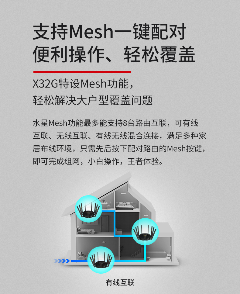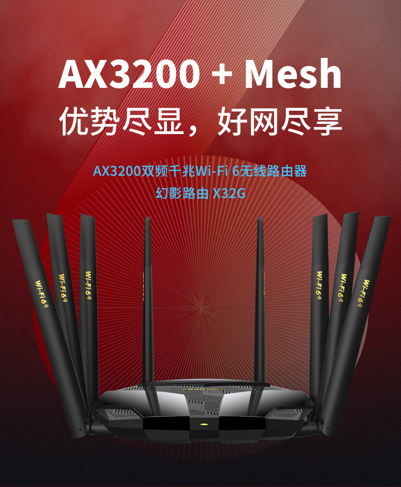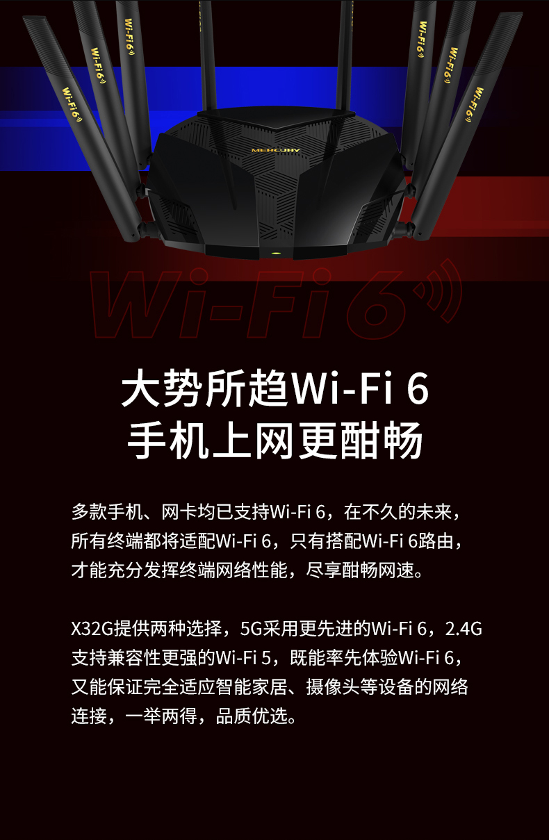 - 商品名称:水星(MERCURY)X32G WiFi6 AX3200全千兆无线路由器 Mesh分布式 5G双频信号穿墙 高速网络家用智能 游戏路由