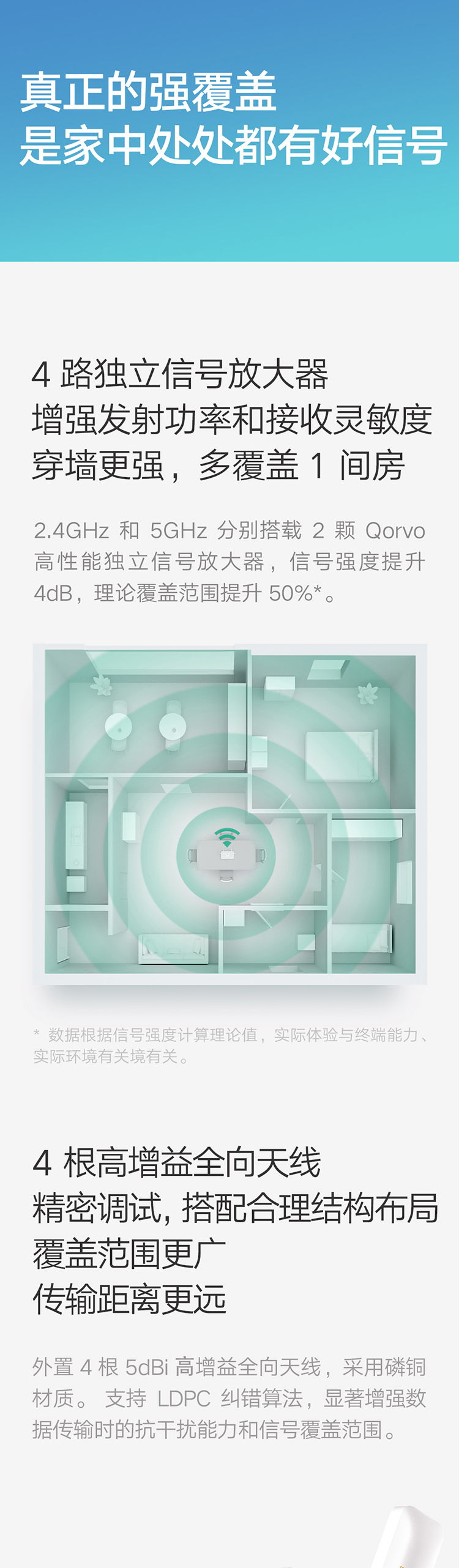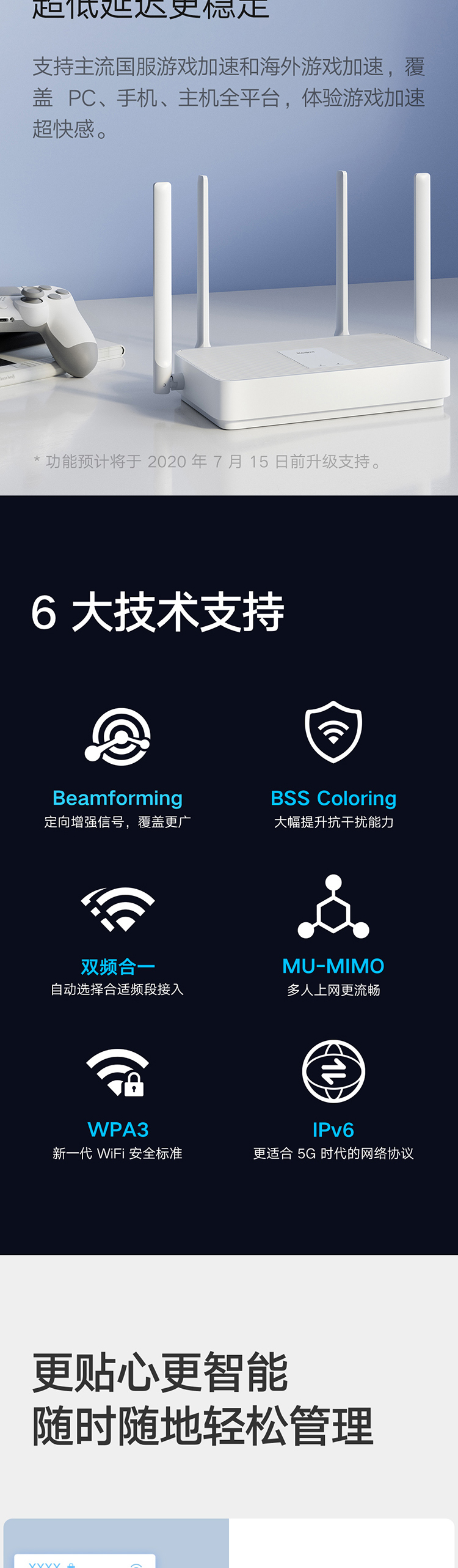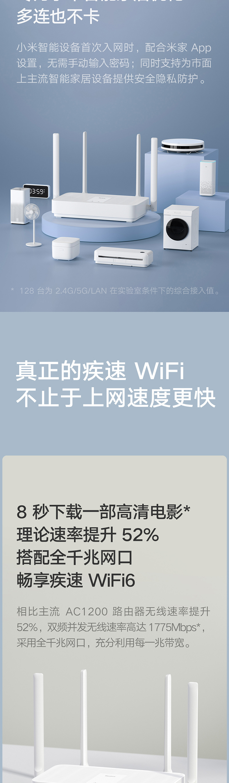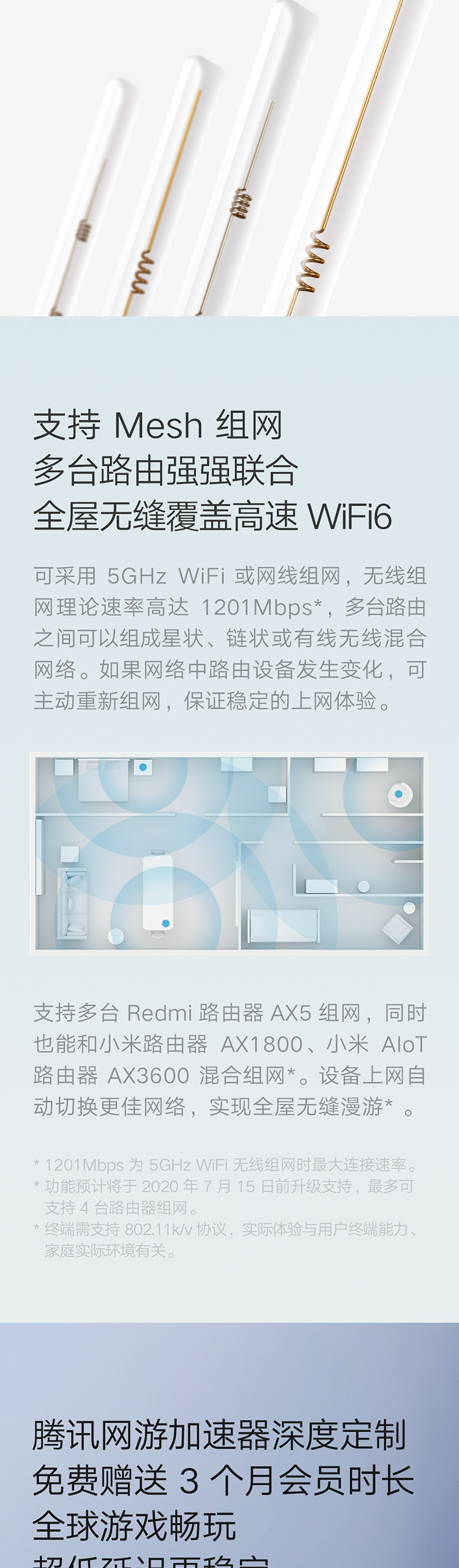 商品名称:Redmi 路由器AX5 高通5核处理器 WIFI6 5G双频 游戏路由 无线家用穿墙 小米路由器