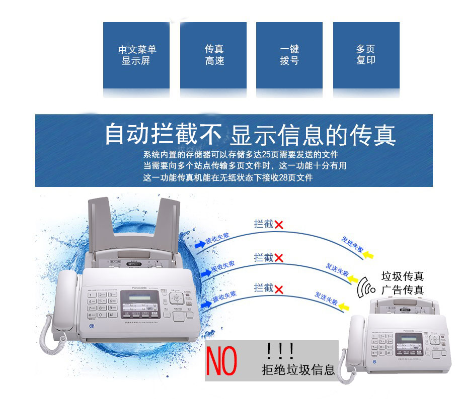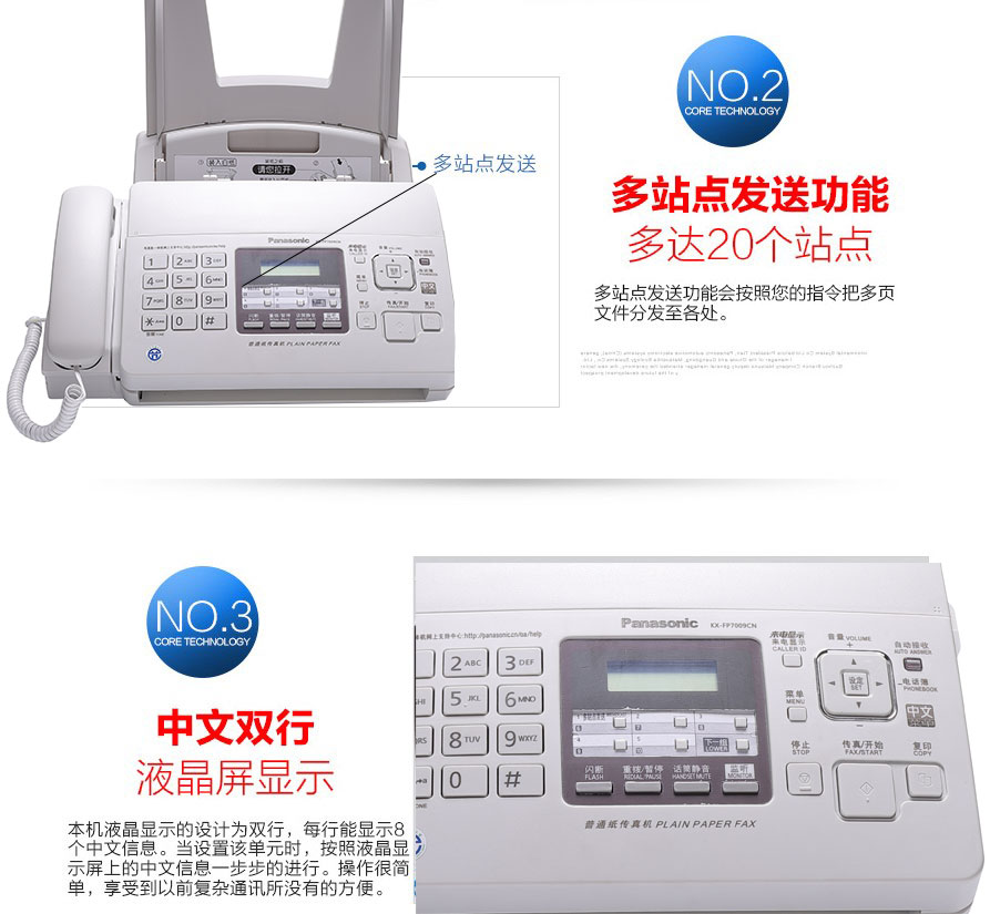 松下7009传真机KX-FP7009CN普通纸传真机A4纸中文显示传真机复印电话 松下7009全中文显示 乳白色