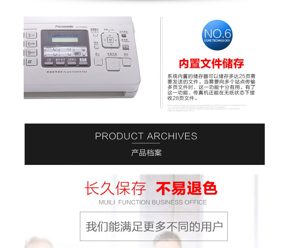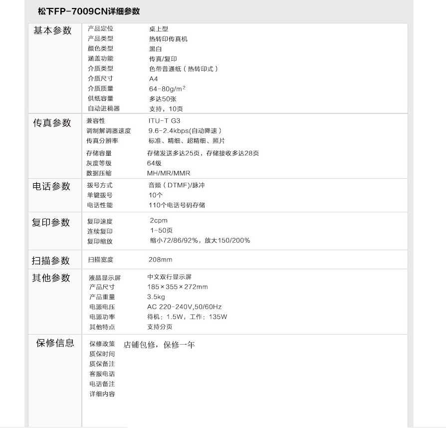 商品名称: 松下7009传真机KX-FP7009CN普通纸传真机A4纸中文显示传真机复印电话 松下7009全中文显示 乳白色
