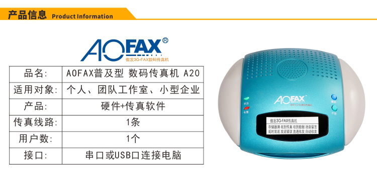 - 商品名称:傲发(AOFAX)A20无纸传真机数码 电脑脱机可收发