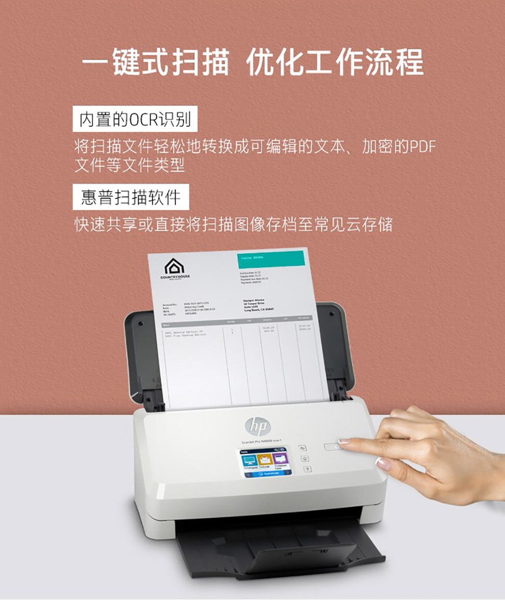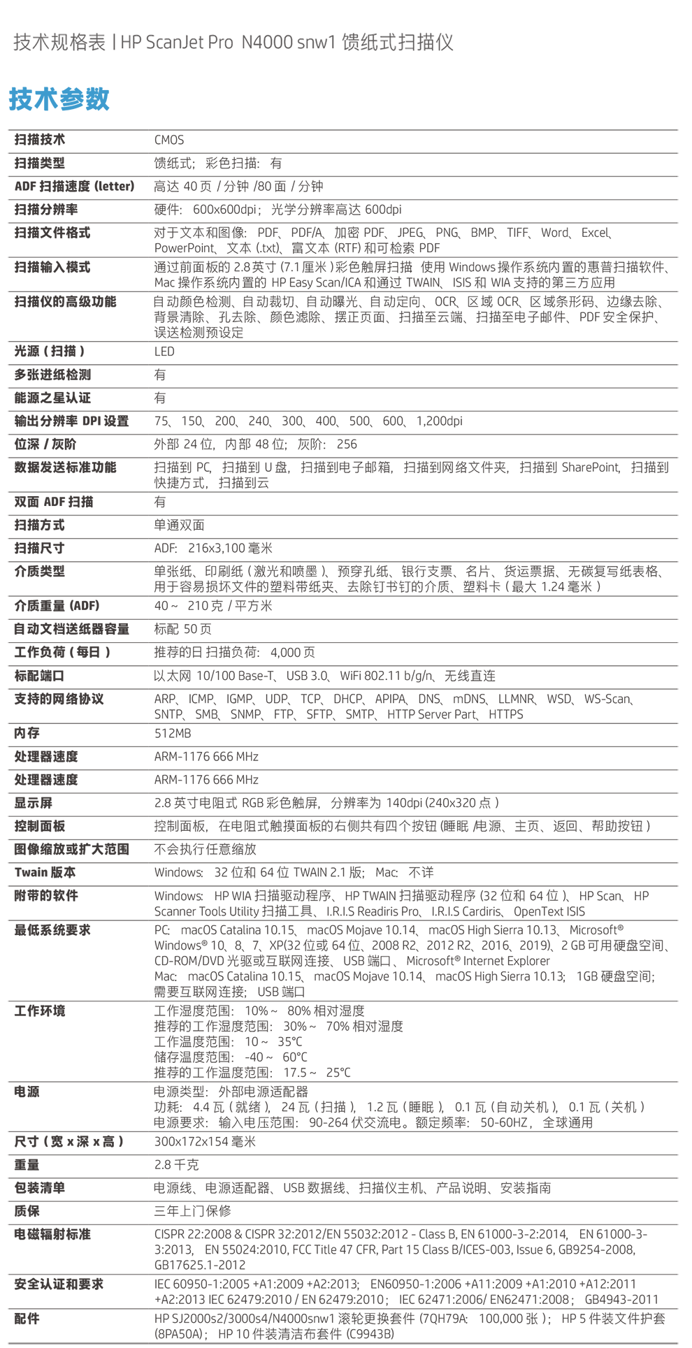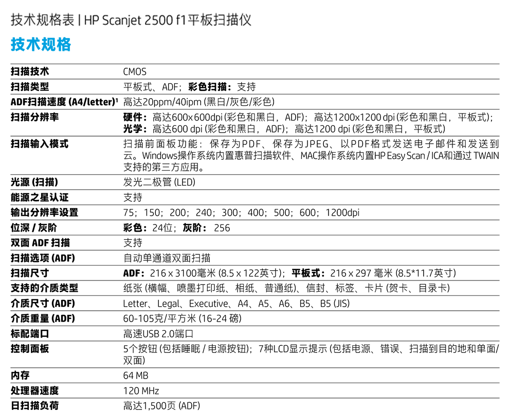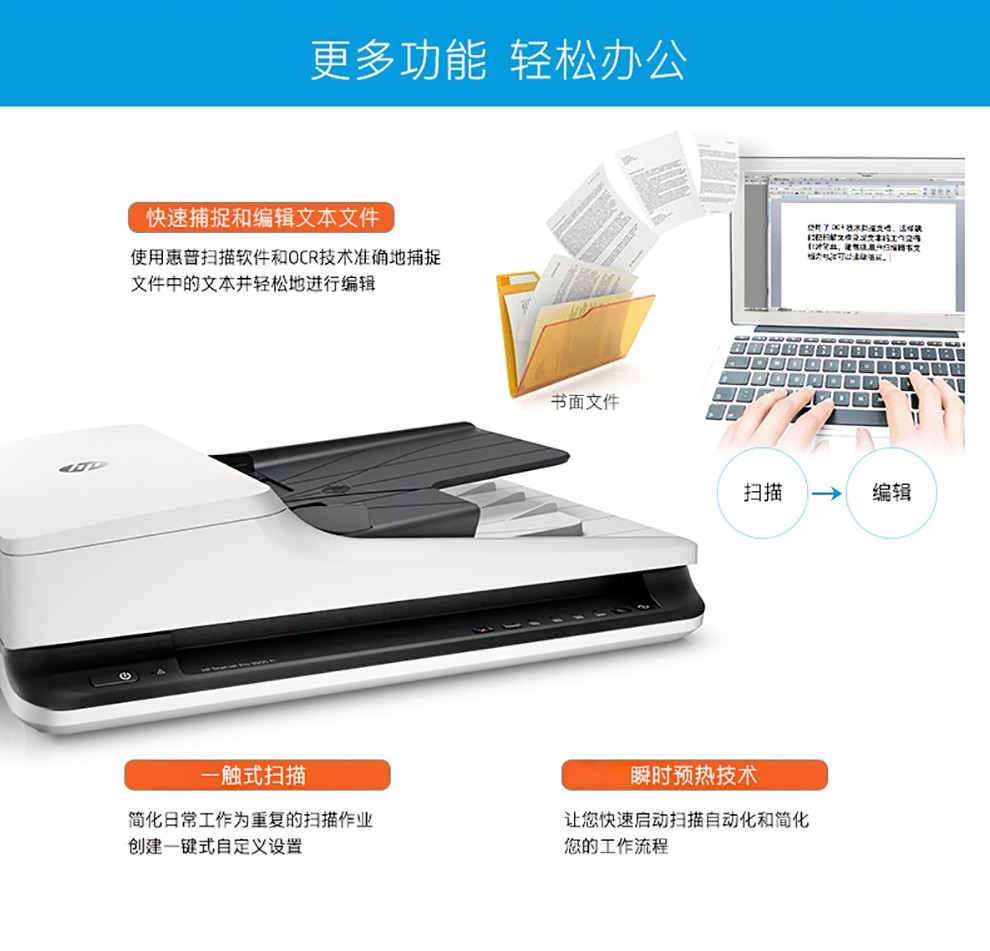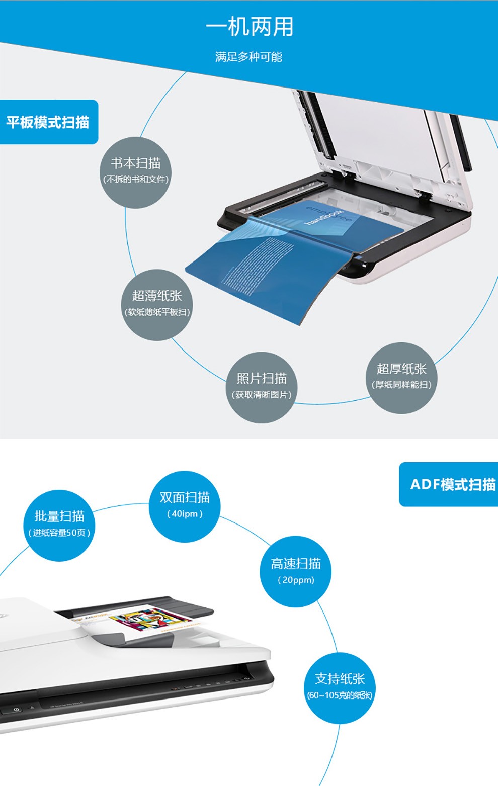 - 商品名称:惠普hp2500f1 4000snw1 4500fn1扫描仪高速连续 平板馈纸自动双面进纸 办公文档 SJ2500f1【20页/40面每分钟】