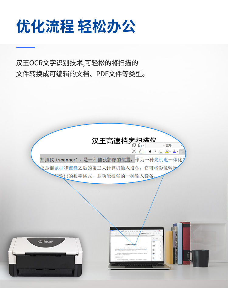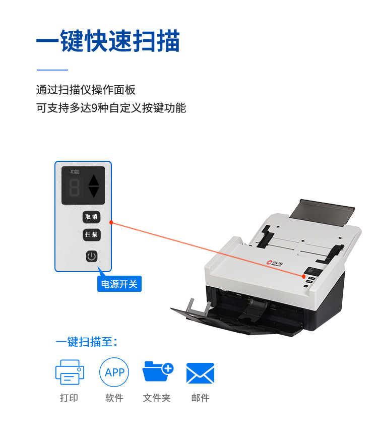 - 扫描介质:文档、单据、笔记、图片、照片、杂志、书籍等
