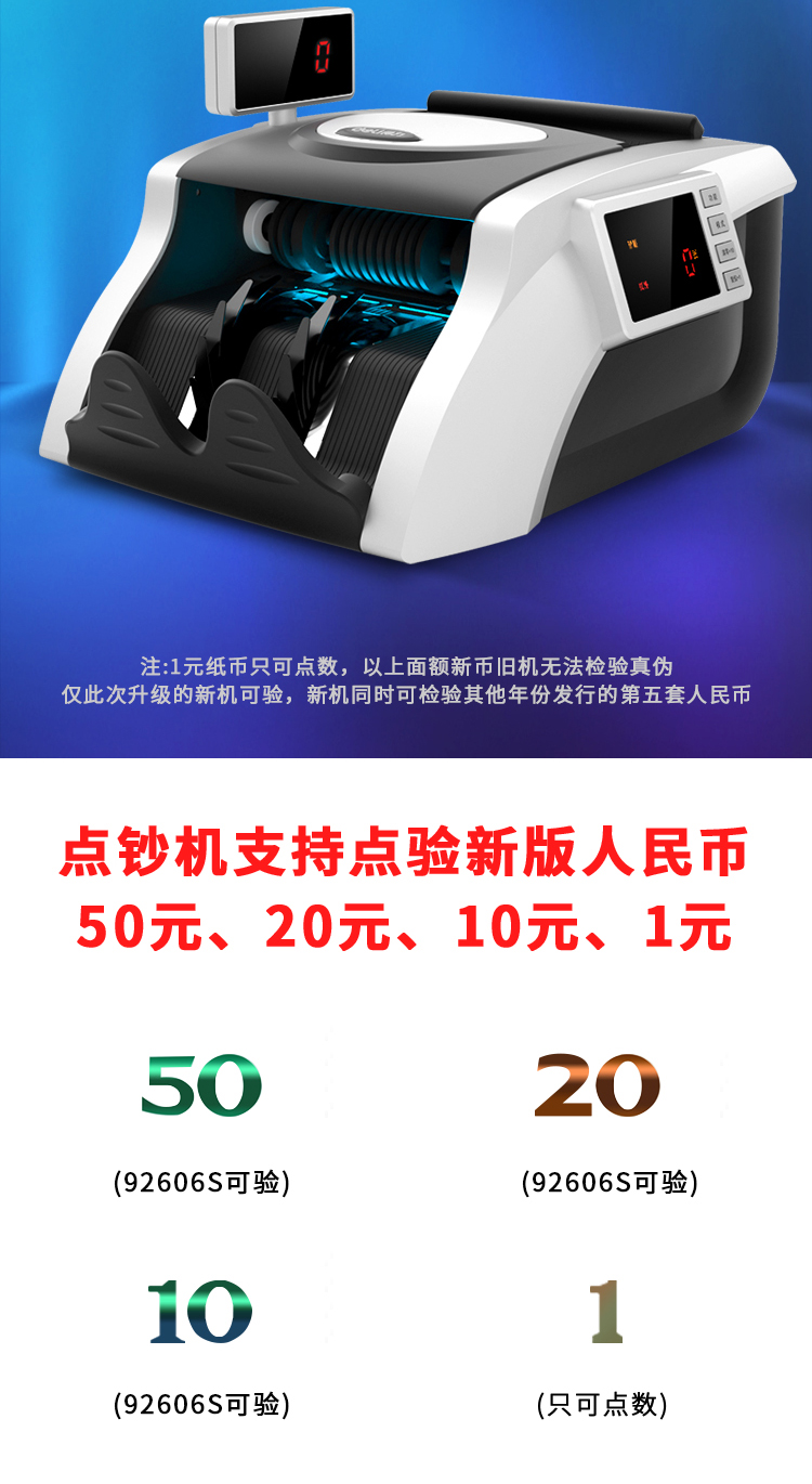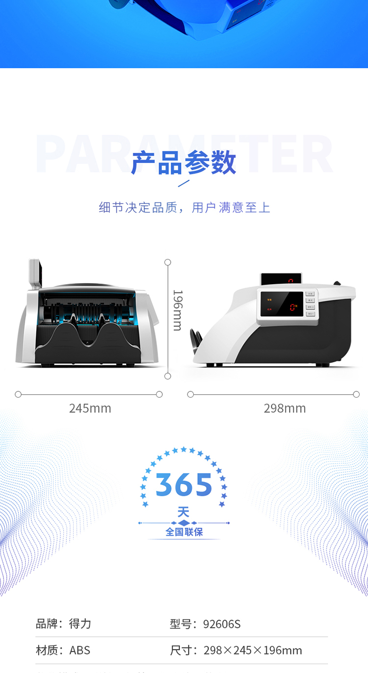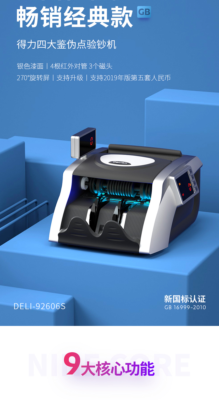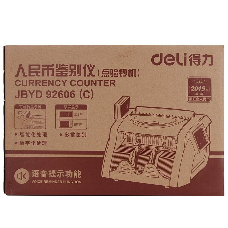 - 商品名称:得力(deli)2019年新版人民币点钞机验钞机升级款 银行专用 双屏语音商用家用国标C级点钞机数钱机 92606S