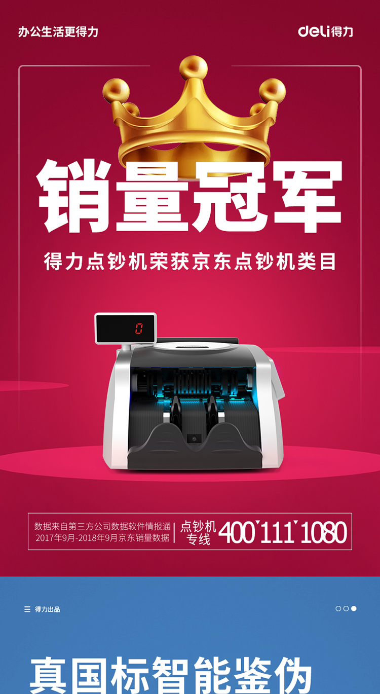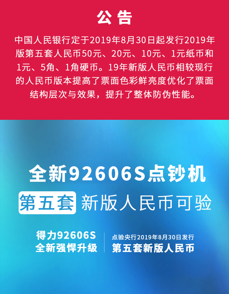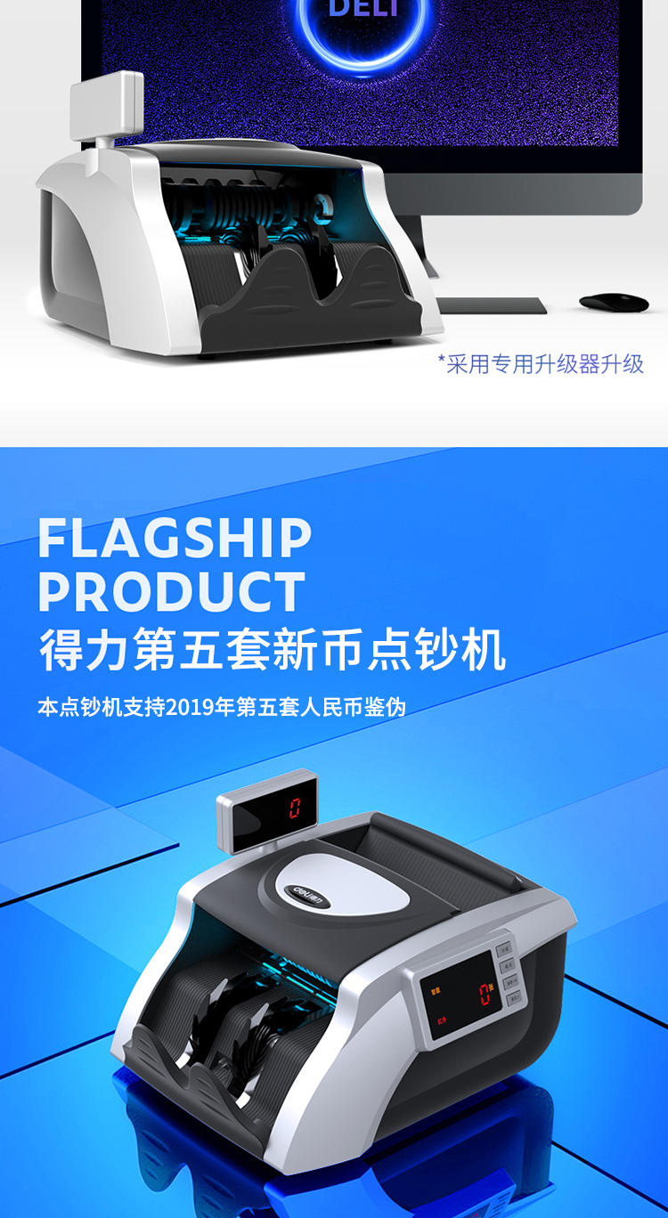 - 商品名称:得力(deli)2019年新版人民币点钞机验钞机升级款 银行专用 双屏语音商用家用国标C级点钞机数钱机 92606S