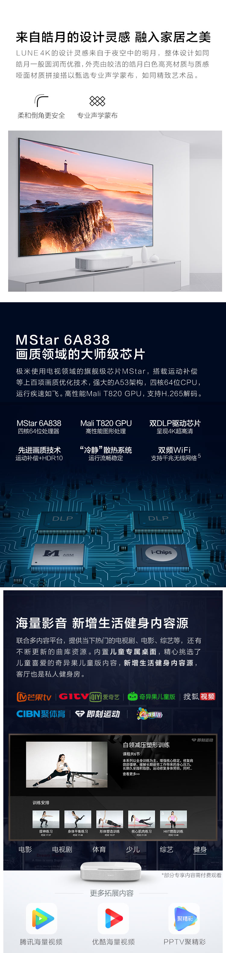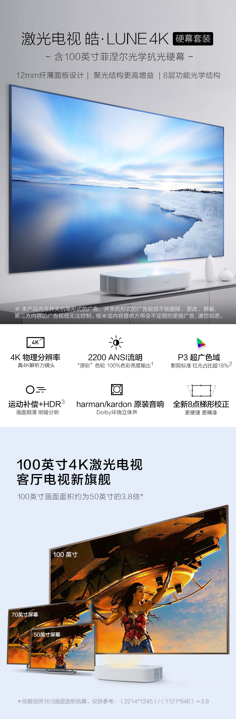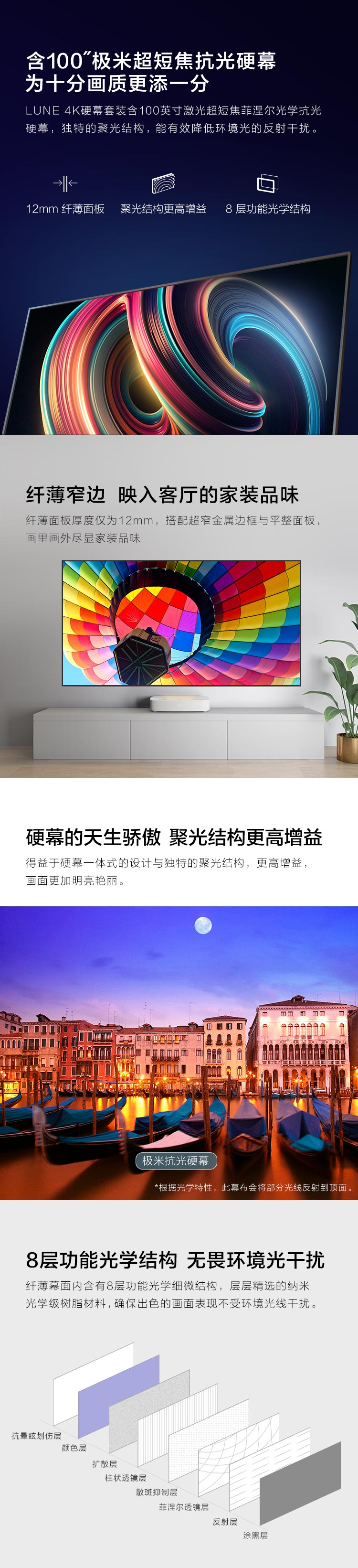 - 商品名称:极米(XGIMI)皓LUNE 4K 硬幕套装 激光电视投影仪 家用 4K超高清 含100英寸菲涅尔抗光硬幕