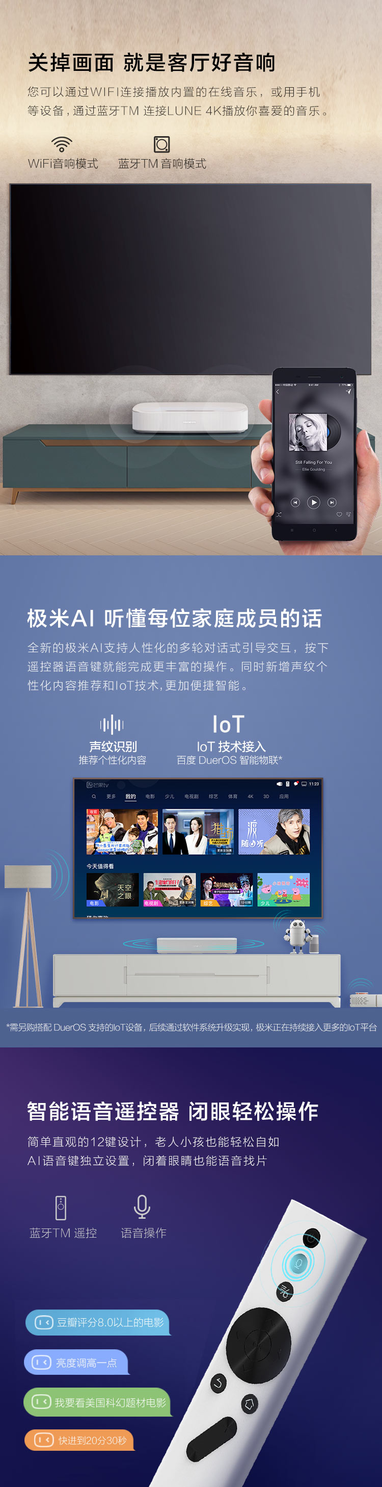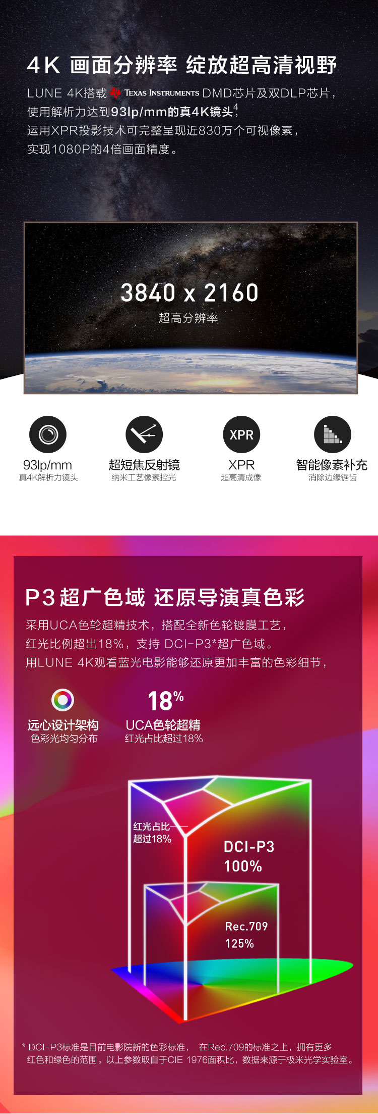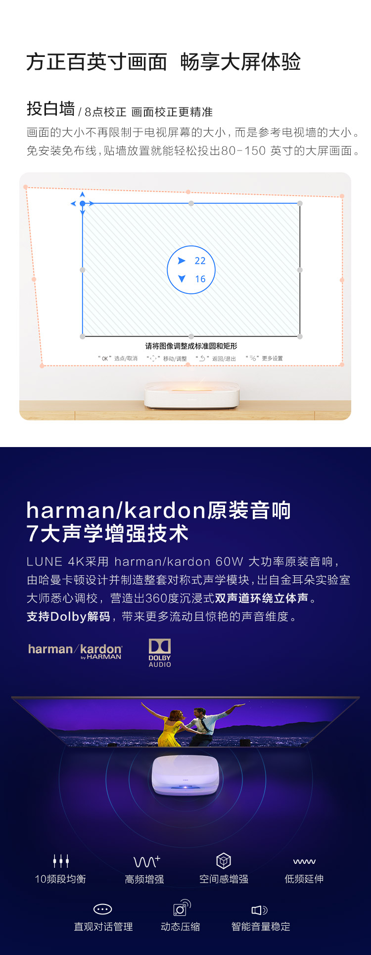 - 商品名称:极米(XGIMI)皓LUNE 4K 硬幕套装 激光电视投影仪 家用 4K超高清 含100英寸菲涅尔抗光硬幕
