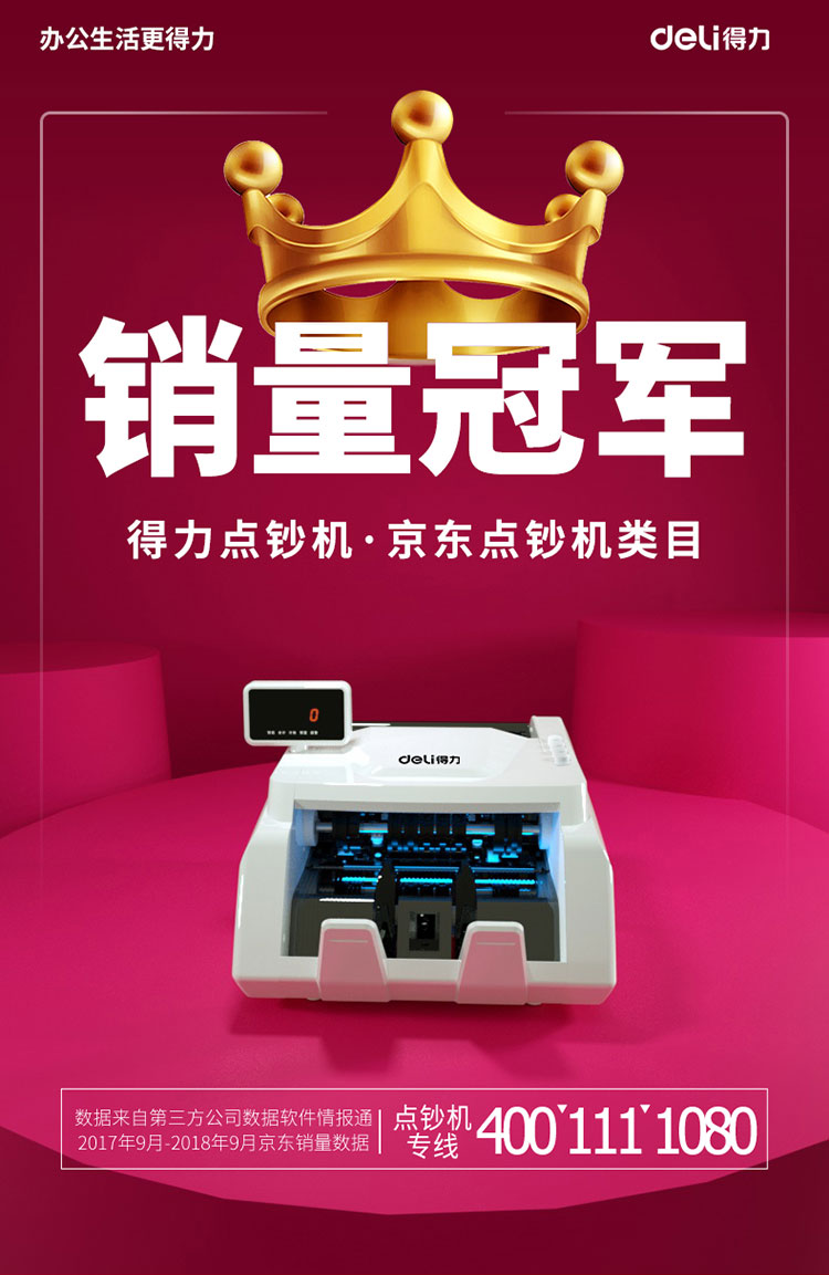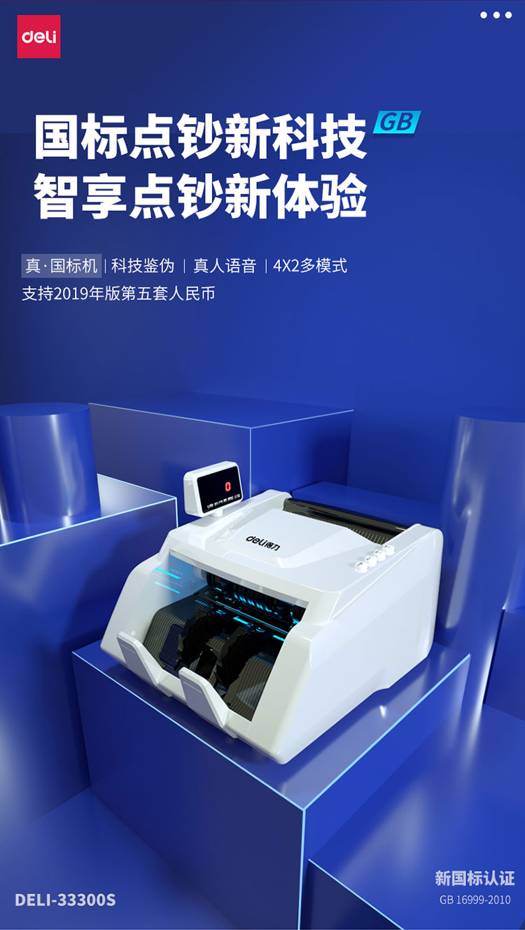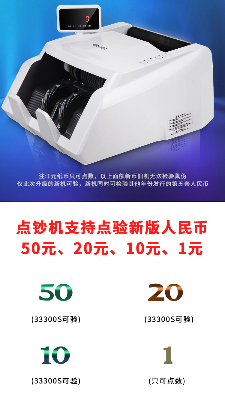 - 商品名称:得力(deli)2019新版人民币点钞机 智能语音小型数钱机商用智能家用国标C级验钞机33300S