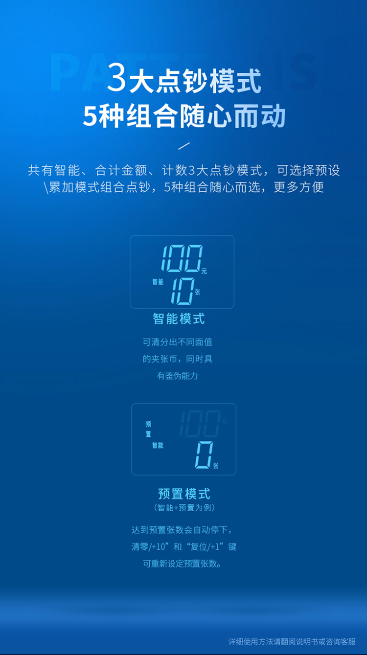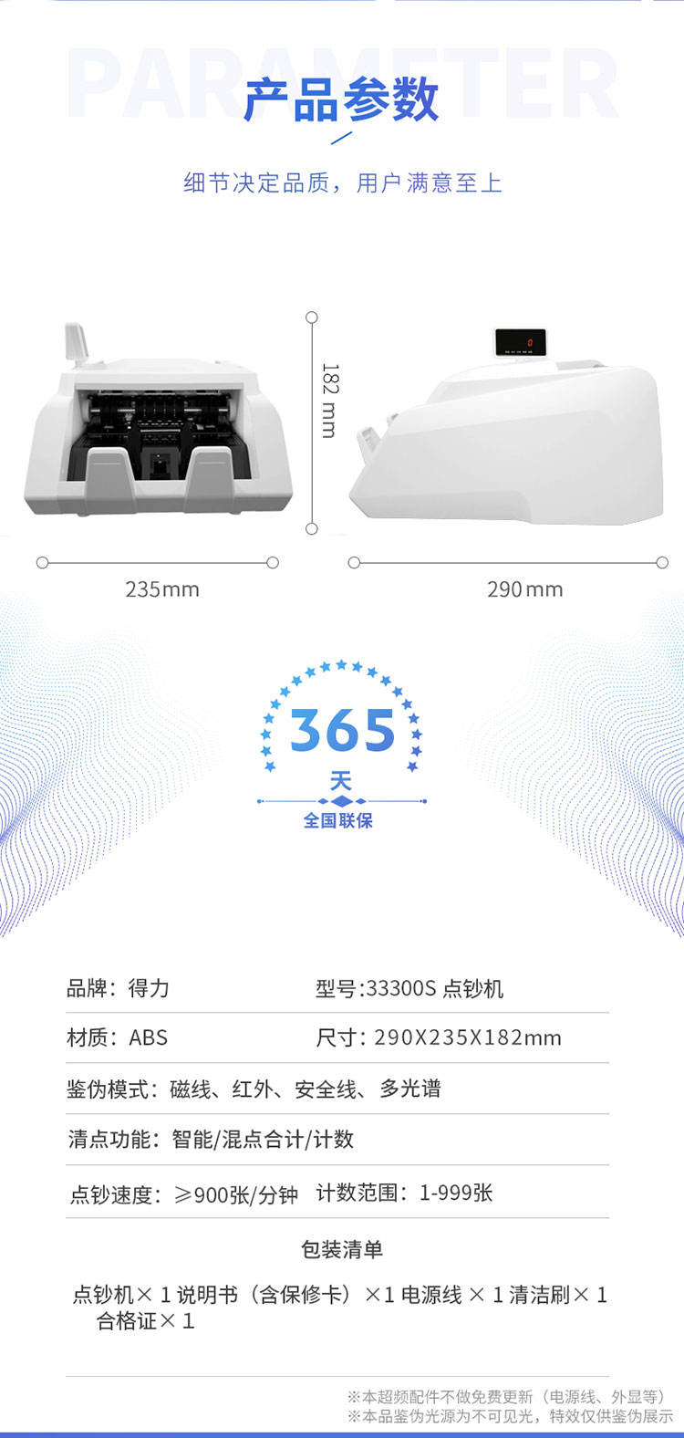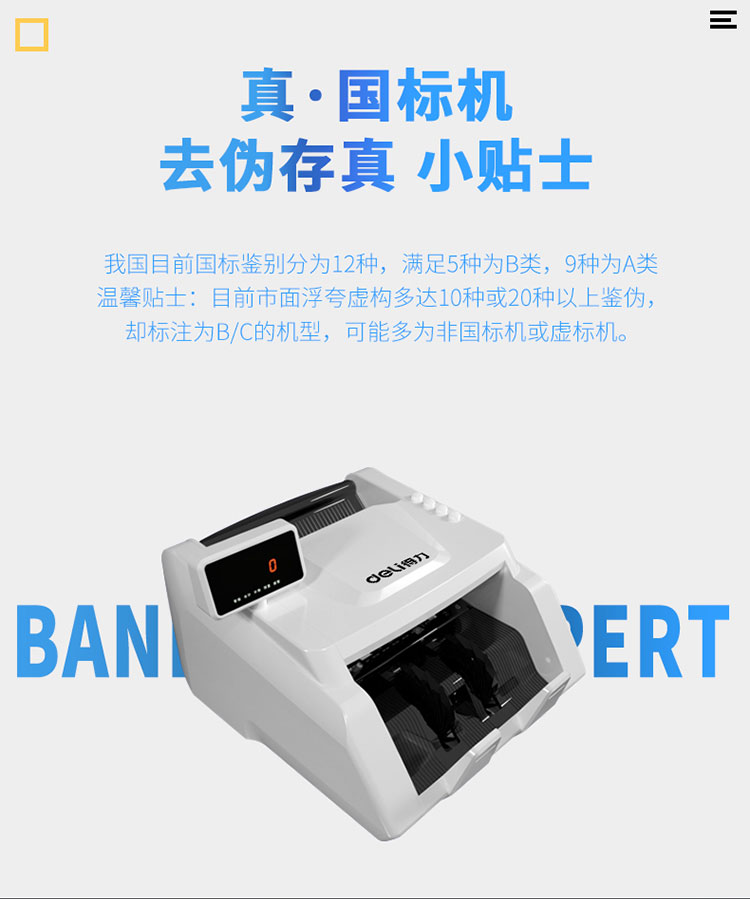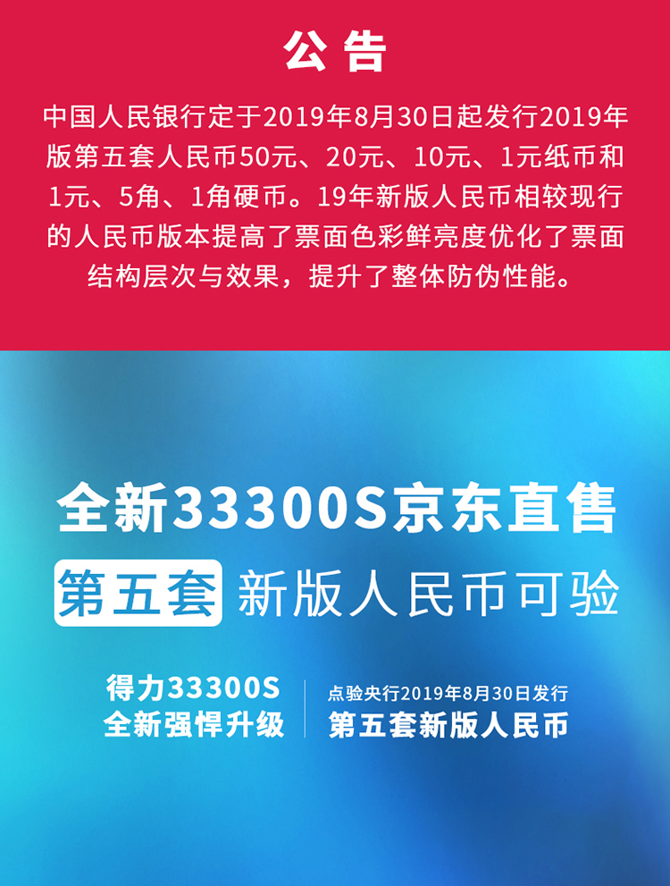 - 商品名称:得力(deli)2019新版人民币点钞机 智能语音小型数钱机商用智能家用国标C级验钞机33300S