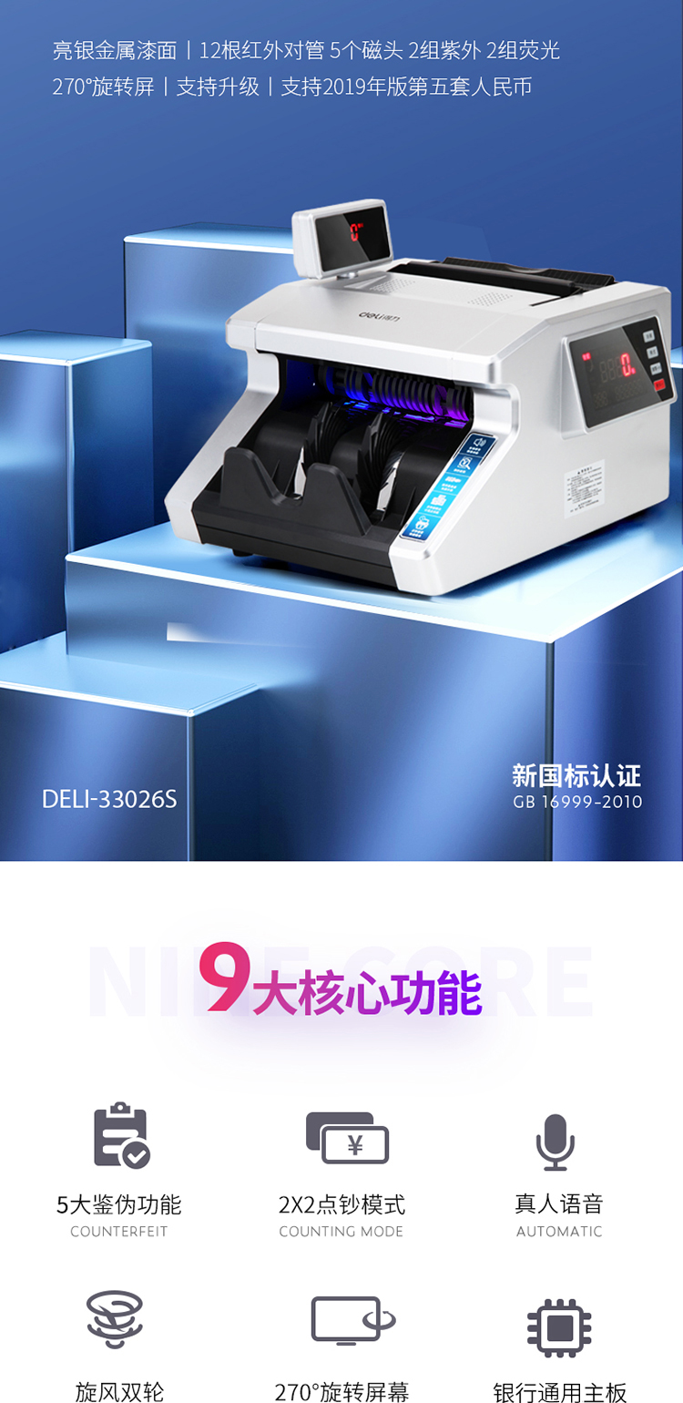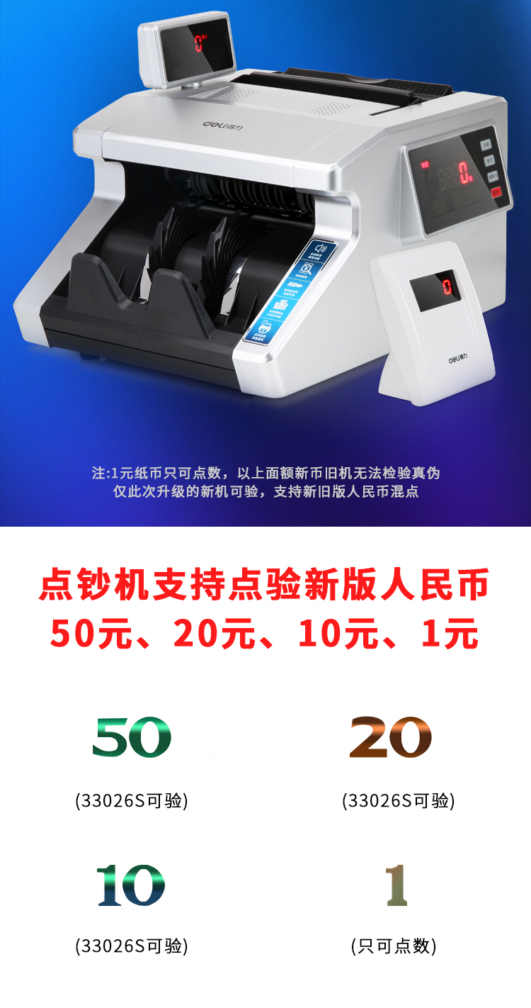 - 商品名称:得力(deli)2019新版增配版智能语音点钞机验钞机 自清洁系统商用家用点钞机数钱机数钞机 33026S