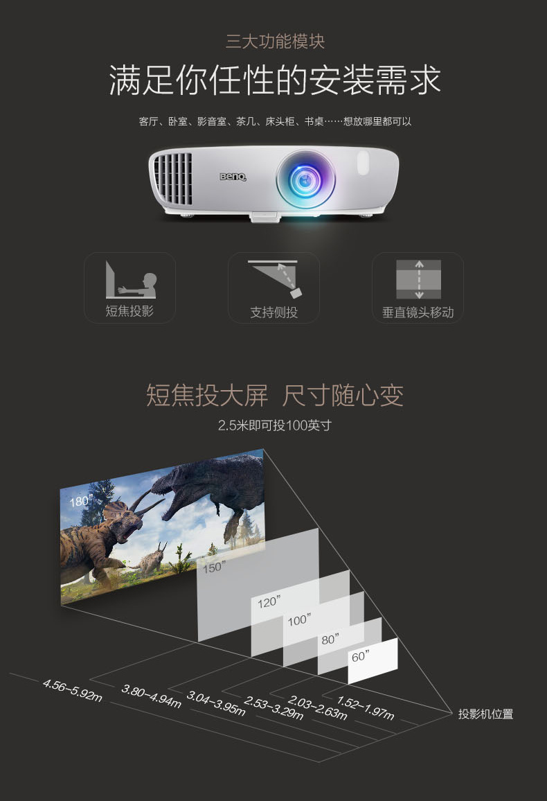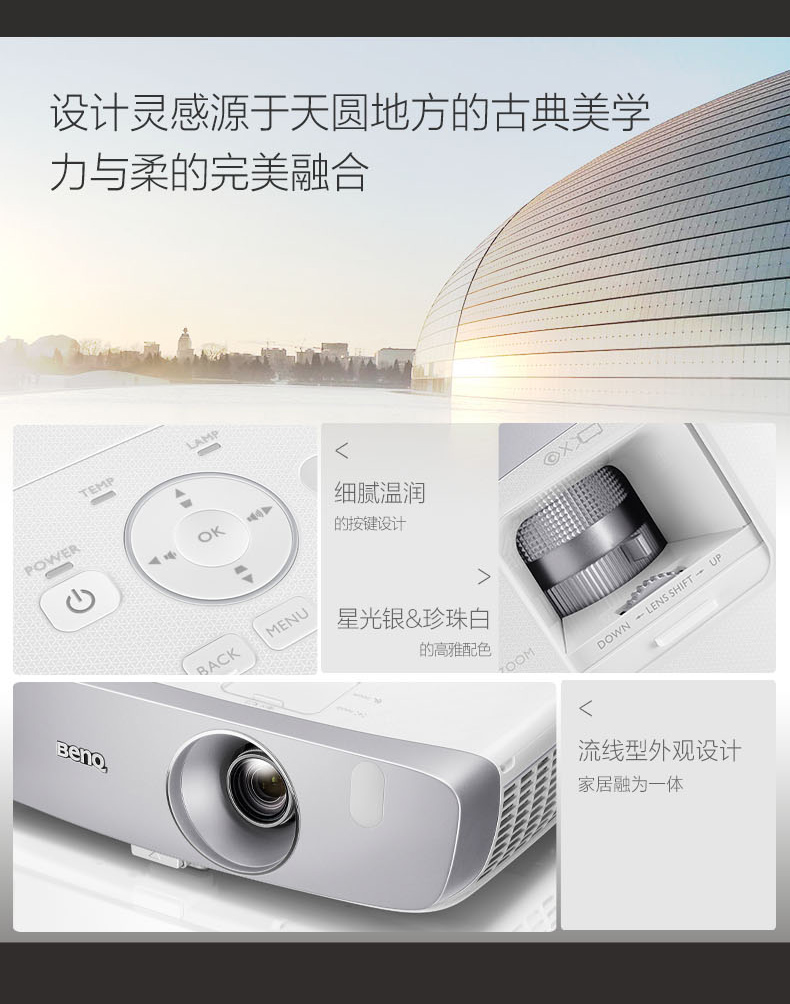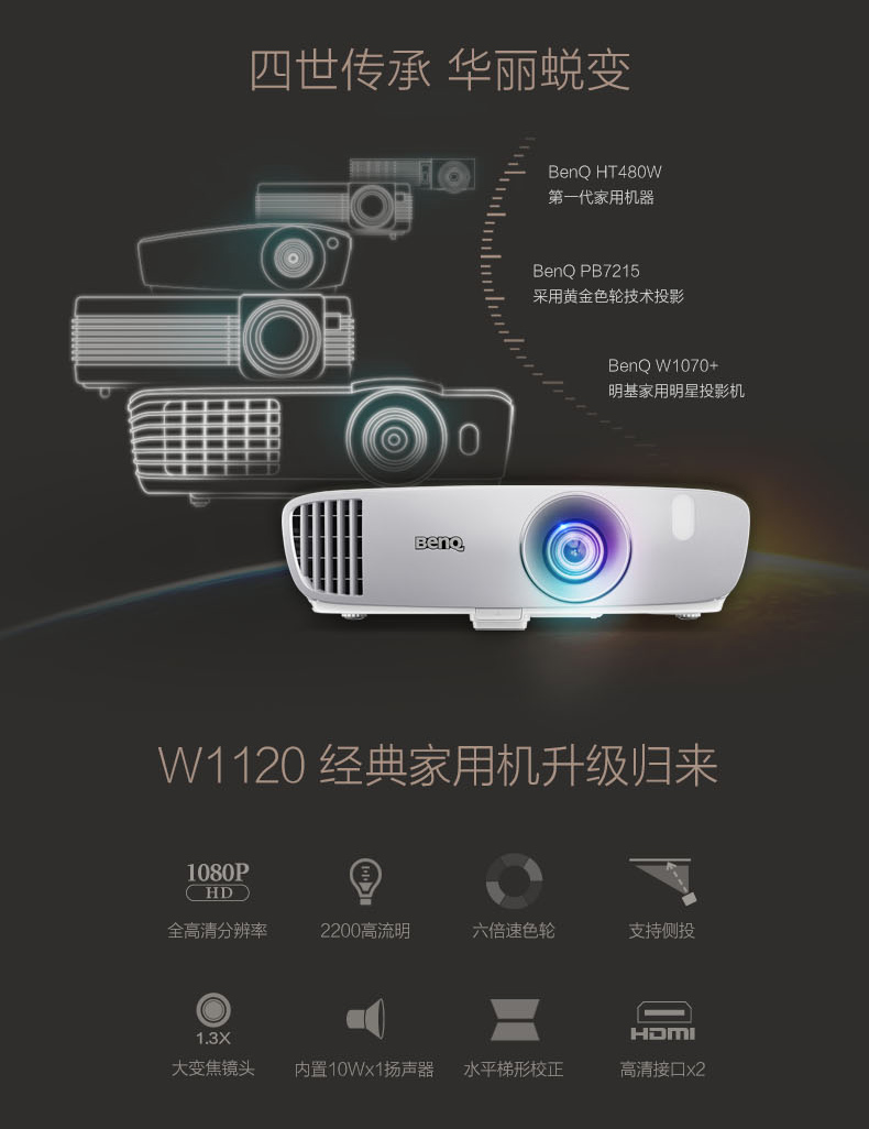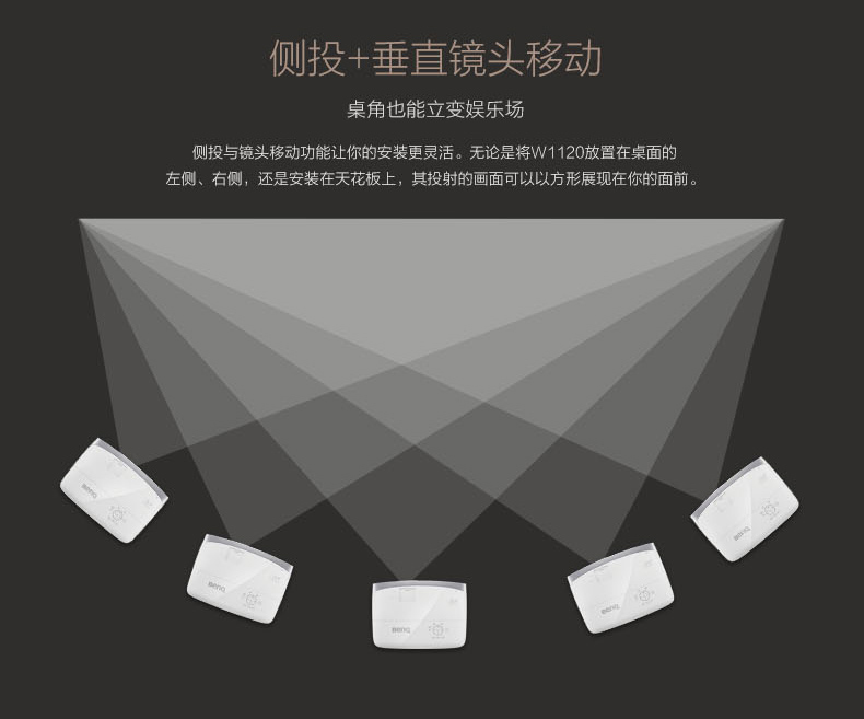 - 商品名称:明基(BenQ)W1120 投影仪 投影机 投影仪 家用(1080P全高清 2200流明 蓝光3D 支持侧投 镜头位移)