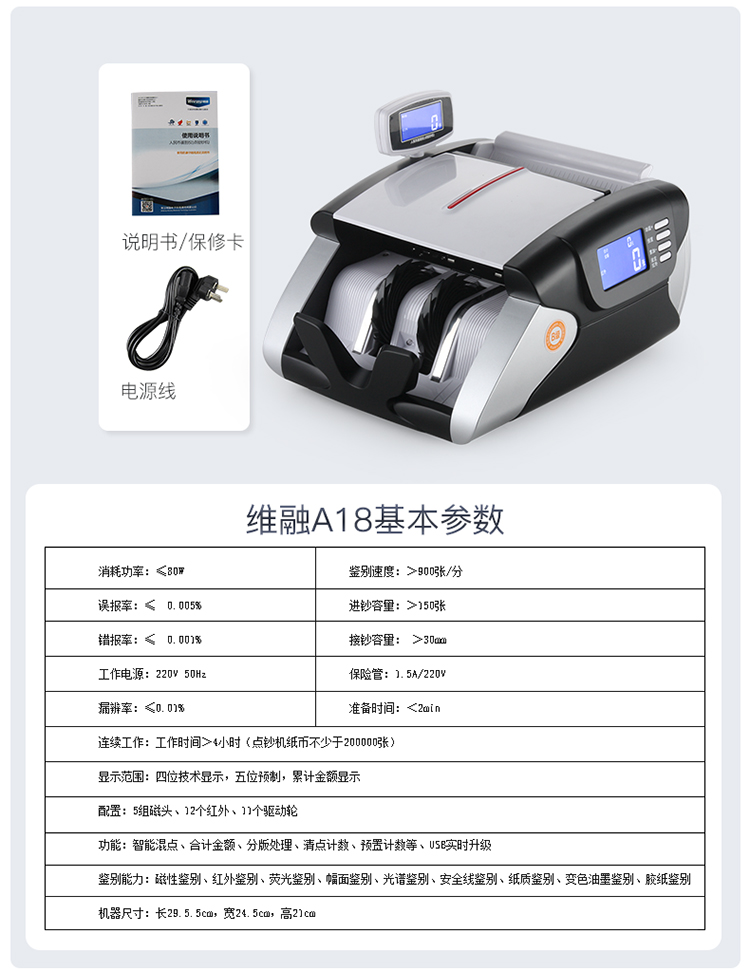- 商品名称:维融(weirong)A18(B)验钞机2020年新版人民币智能语音点钞机 银行专用免升级新旧混点