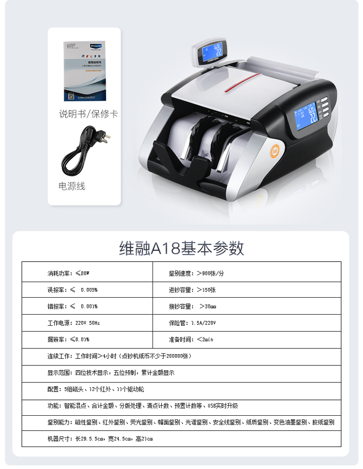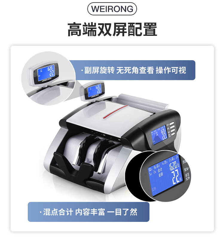 - 商品名称:维融(weirong)A18(B)验钞机2020年新版人民币智能语音点钞机 银行高端屏幕版