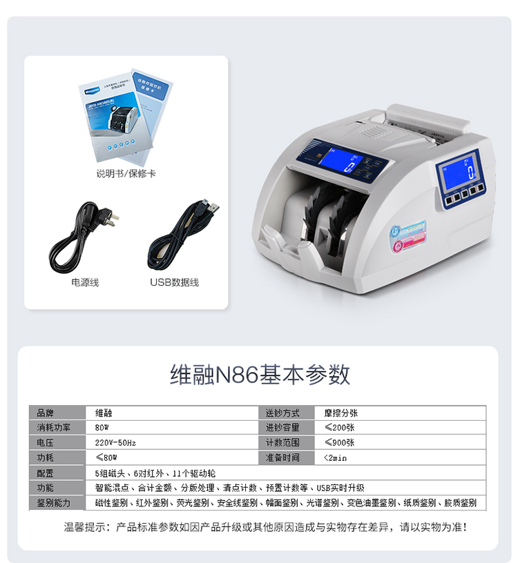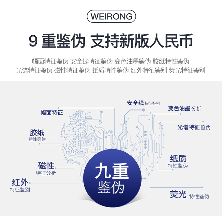 - 商品名称:维融(weirong)N86(B)点钞机2020年新版人民币 银行级小型全智能混点验钞机