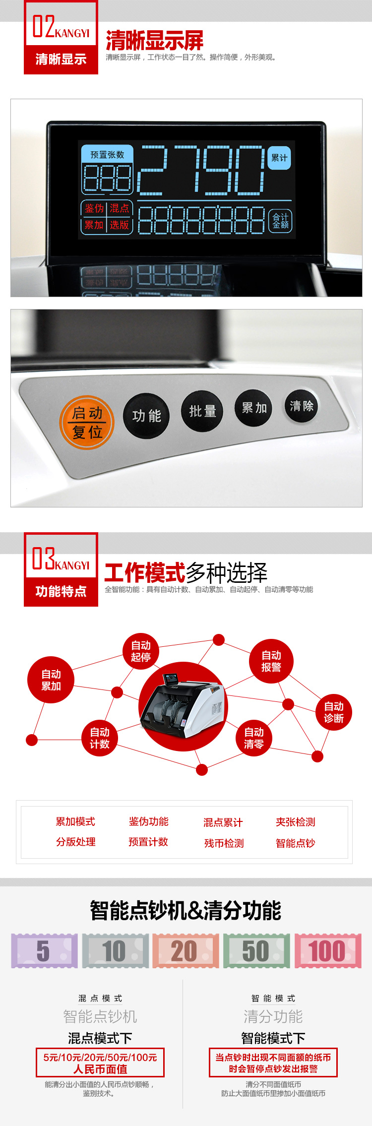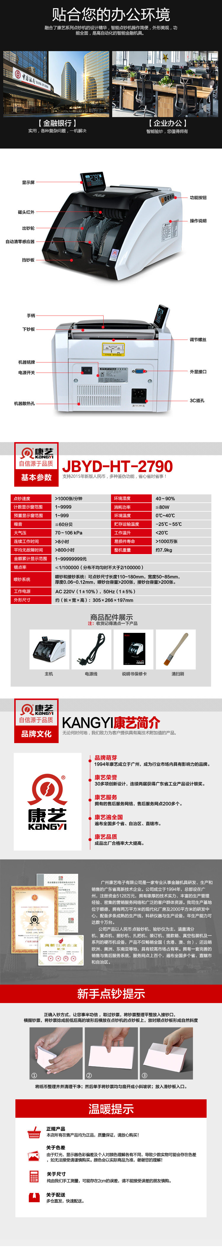 - 商品名称:康艺(KANGYI)支持2019新币 康艺JBYD-HT-2790(B) 验钞机 数钱机智能点钞机银行品牌