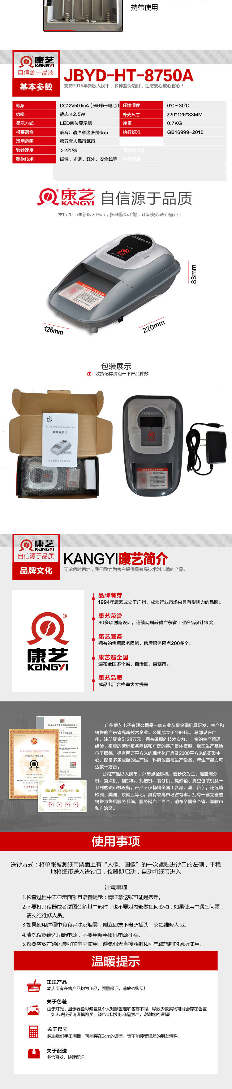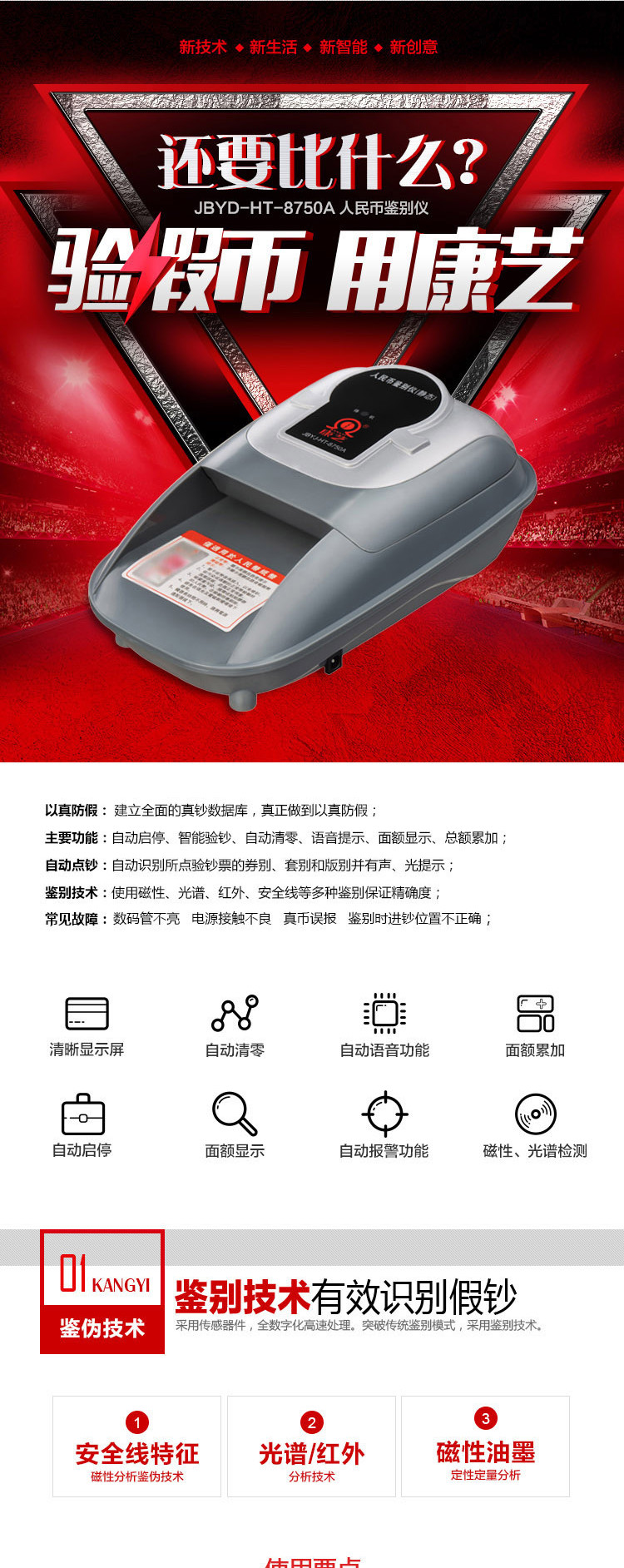 商品名称:康艺(KANGYI)JBYD-HT-8750A 支持2019新版人民币 点钞机便捷式验钞机验钞仪
