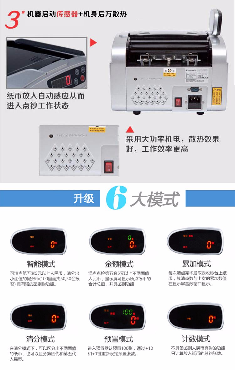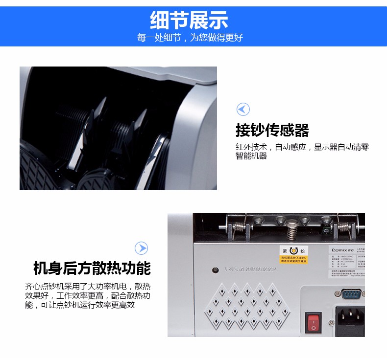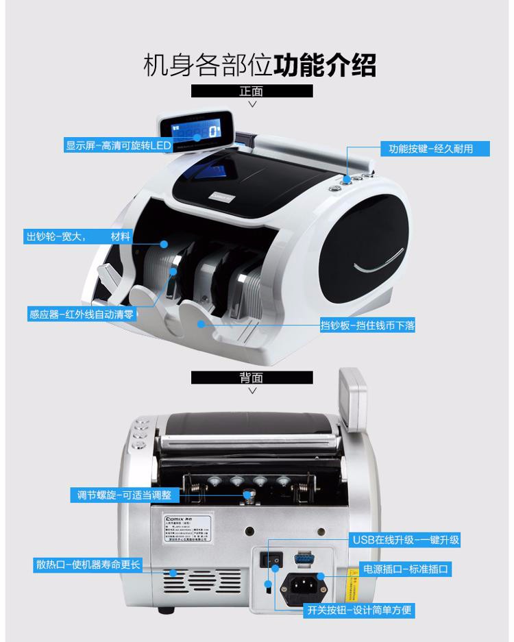 - 商品名称:齐心(COMIX)验钞机 办公商务金融银行用点钞机USB端钞票新版人民币鉴别仪双屏可旋转点验钞机C类 JBYD-2188(C)