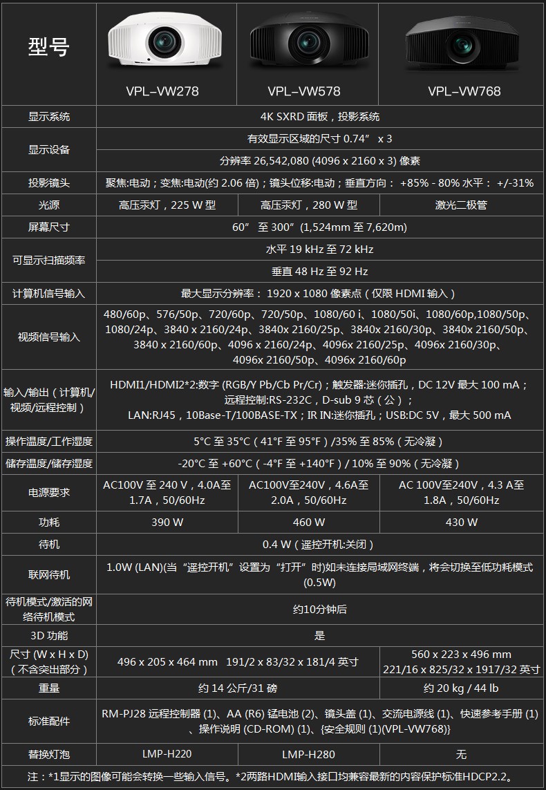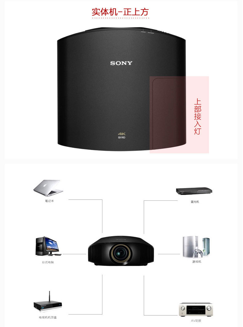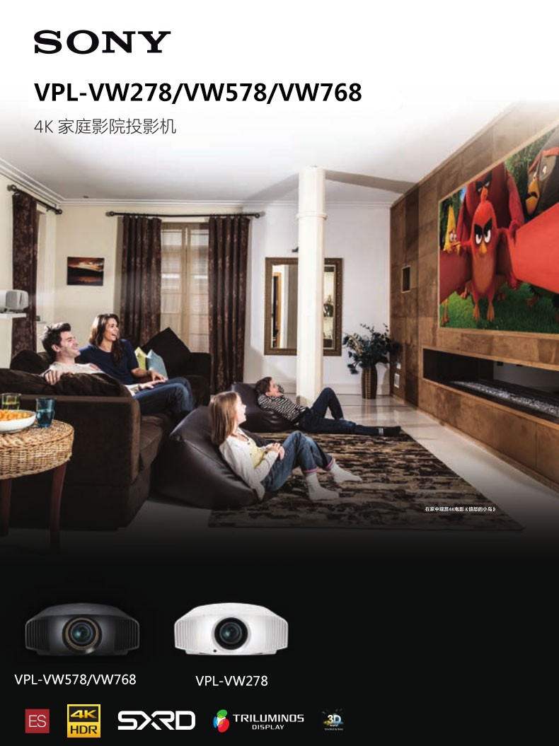 索尼(SONY)VPL-VW278投影仪 家用投影仪 家庭豪华影院 3D高清投影机 真4K投影 (新品白色) 官方标配
