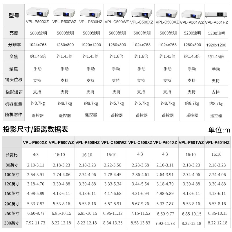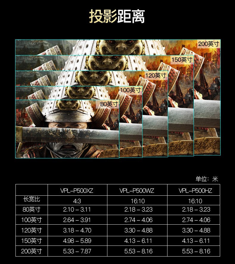 索尼(SONY)VPL-P501WZ激光投影仪 工程投影机 (高清宽屏 5200流明 ) 标配+英微250英寸纤维电动幕+上门安装