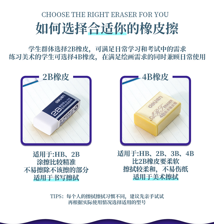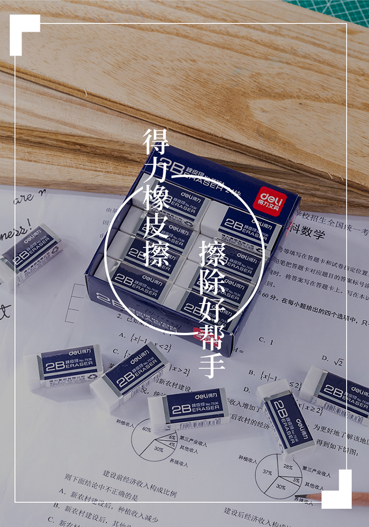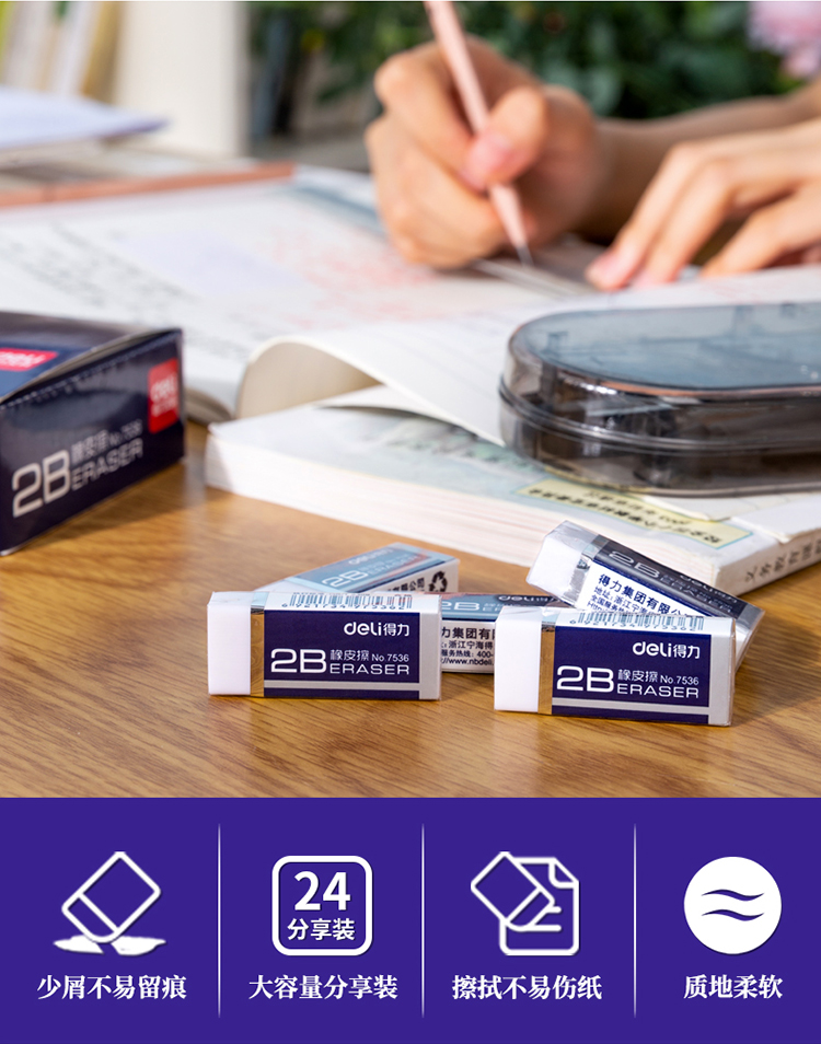 - 商品名称:得力(deli)24块净白2B橡皮擦 易擦少屑 简约办公 学生考试 美术绘图橡皮 铅笔用7536A