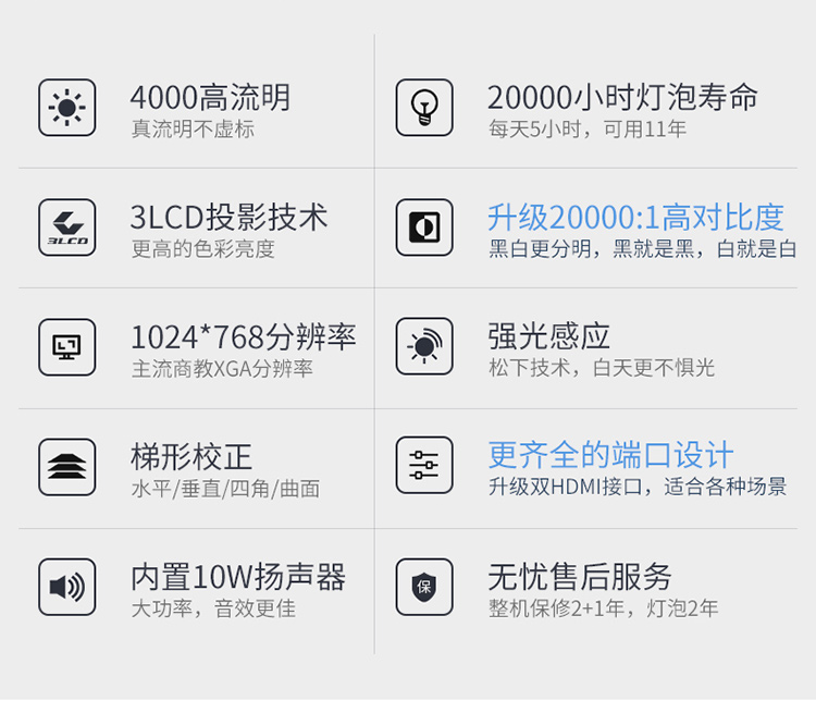 - 对比度:20000:1