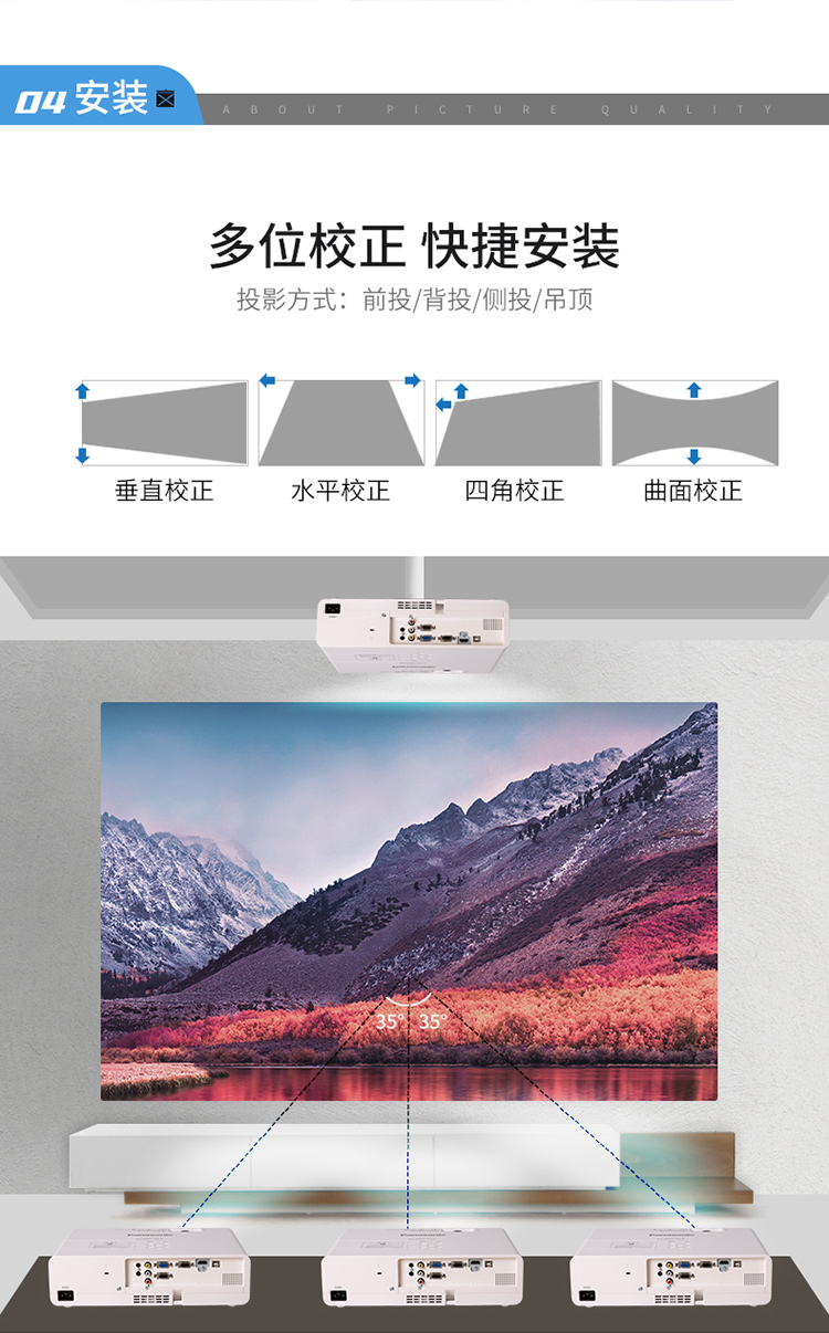 - 桌上正投;吊装正投;吊装背投;桌上背投