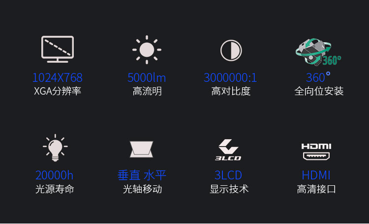 - 桌上正投;吊装正投;吊装背投;桌上背投;360度投影