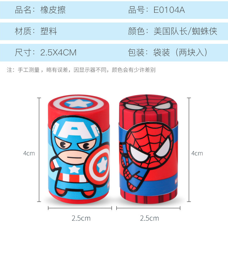 - 商品名称:迪士尼(Disney)儿童橡皮擦 小学生文具洁净橡皮擦 漫威系列 2个装 E0104A