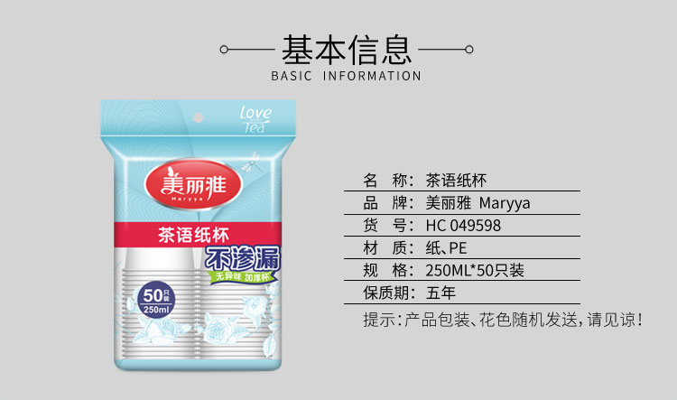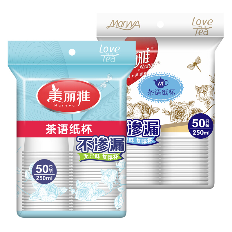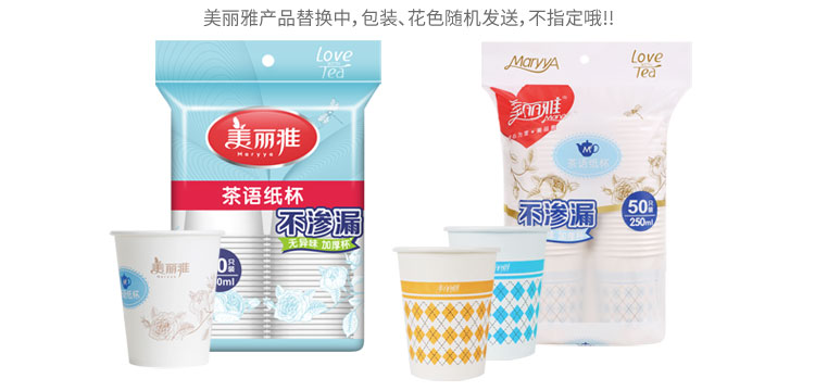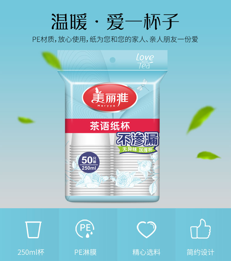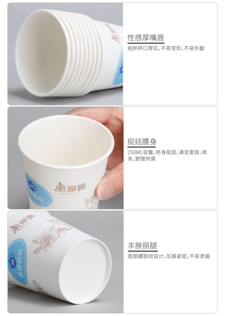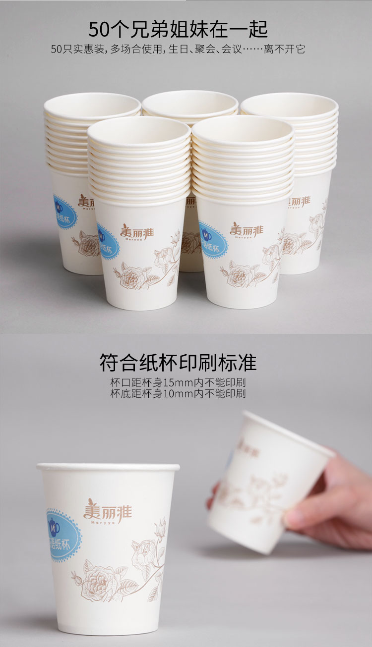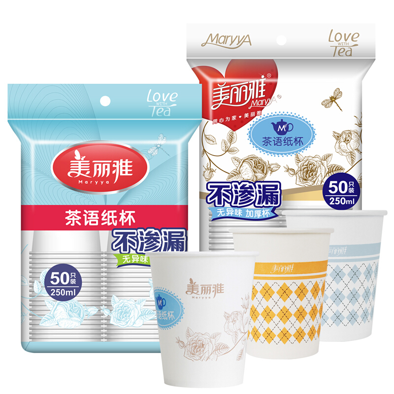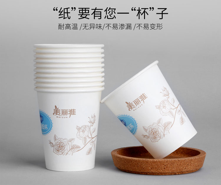 - 商品名称:美丽雅 茶语加厚纸杯大号250ml*50只 一次性杯子耐热不渗漏一次性纸杯