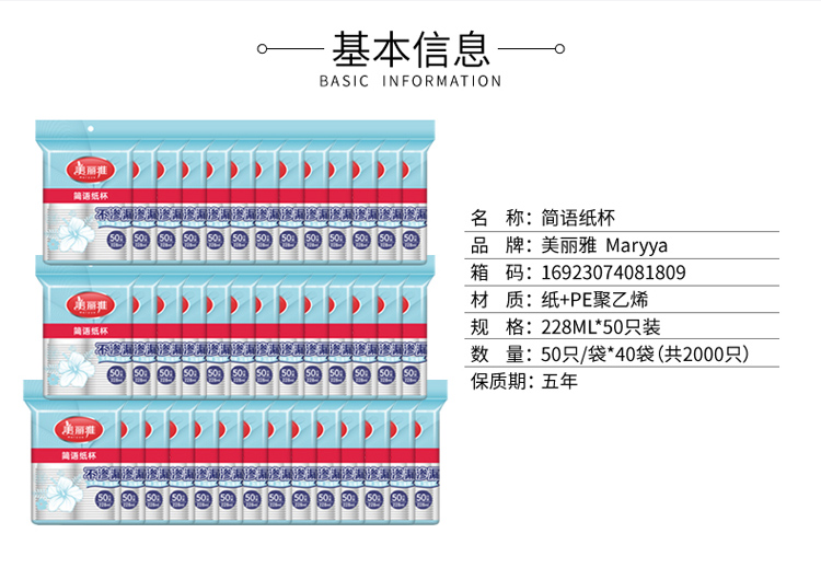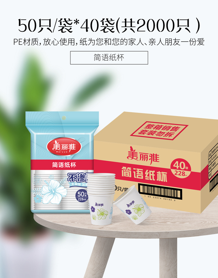 - 商品名称:【整箱】美丽雅 简语纸杯228ml*50只*40袋一次性杯子
