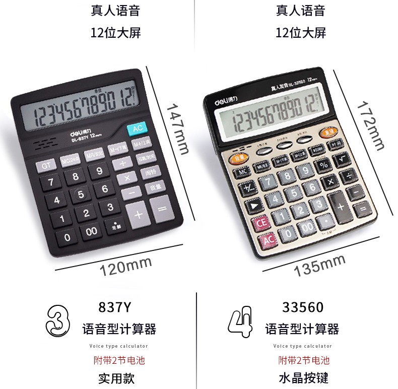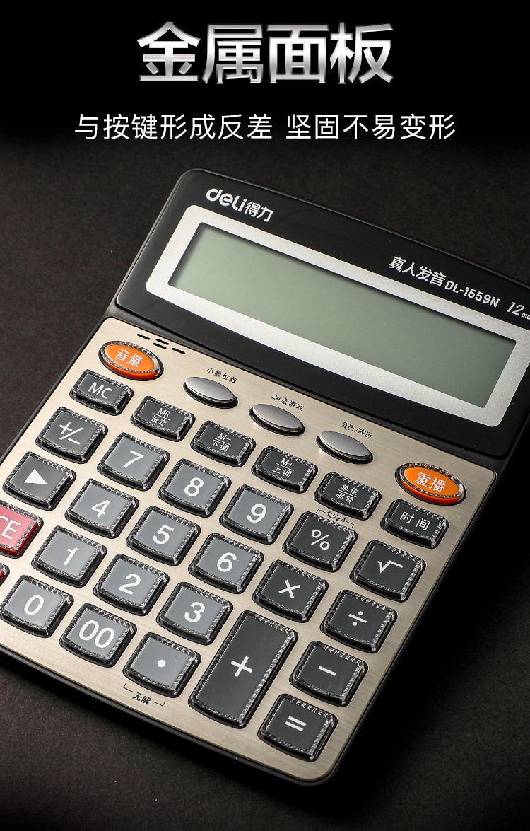- 商品名称:得力(deli)计算器水晶大按键大屏幕语音型计算机真人发音财务计算器 中号水晶按键经济款 1512