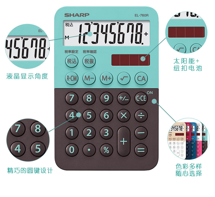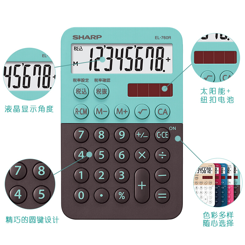 - 商品名称:夏普SHARP 小号计算器迷你便携8位双重电源电子计算机带税率计算功能可爱时尚糖果色EL-760 EL-760R-GX绿色一个