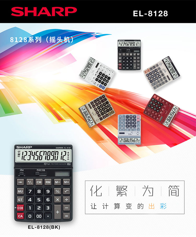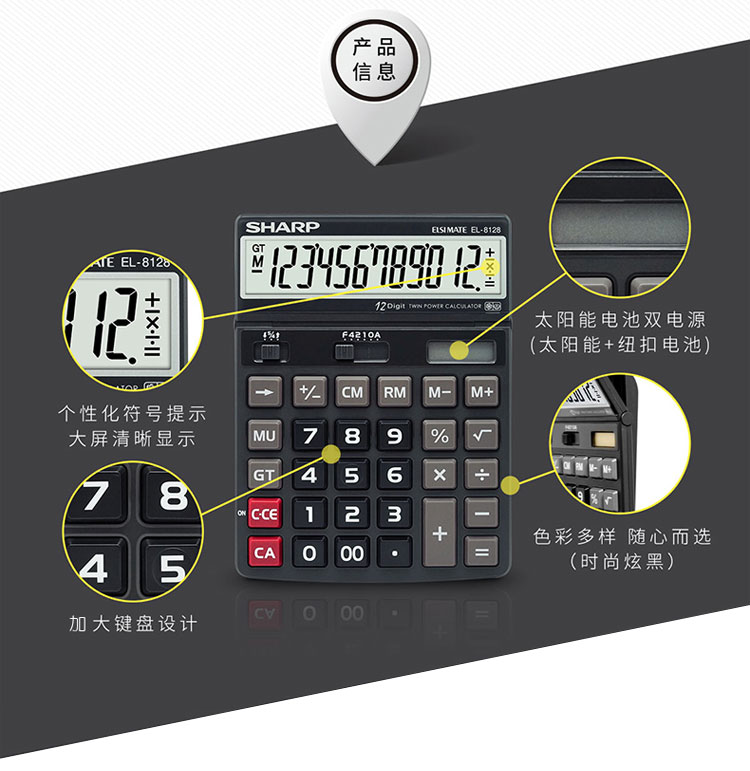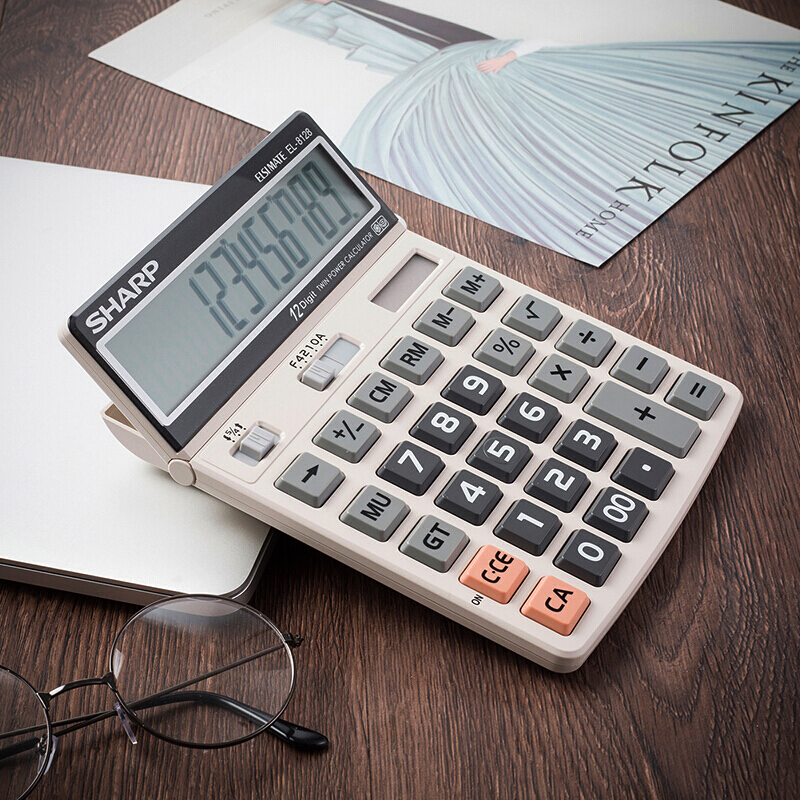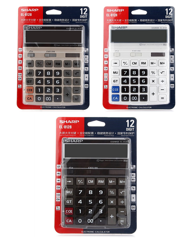 - 商品名称:夏普SHARP摇头大屏计算器12位大按键太阳能计算机 财务会计办公用大号简约电子计算器EL-8128 EL-8128亮白一个