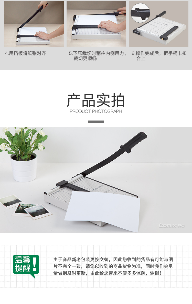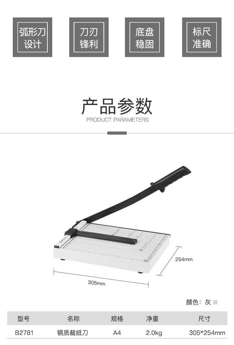 商品名称:齐心(Comix)B2781 A4钢质切纸机/切纸刀/裁纸刀/裁纸机 305mm*254mm