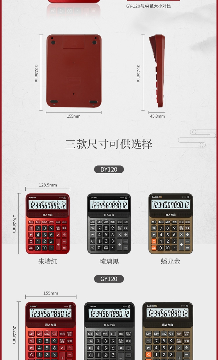 商品名称:卡西欧(CASIO)GY-120-RD 语音计算器 朱墙红
