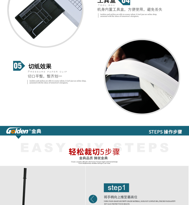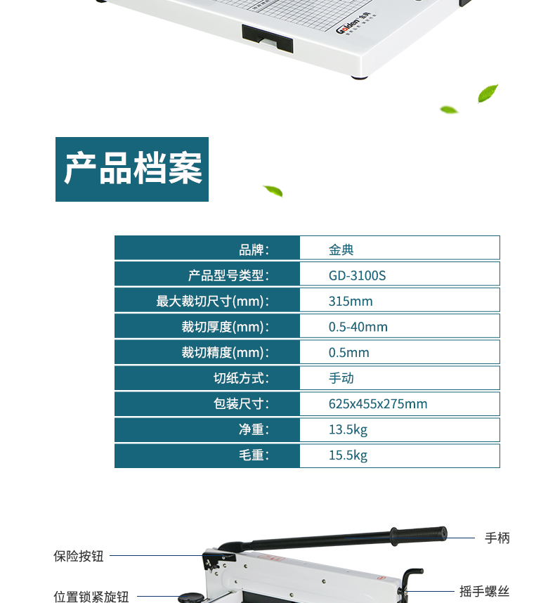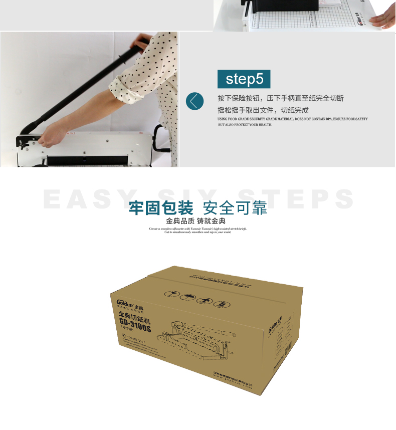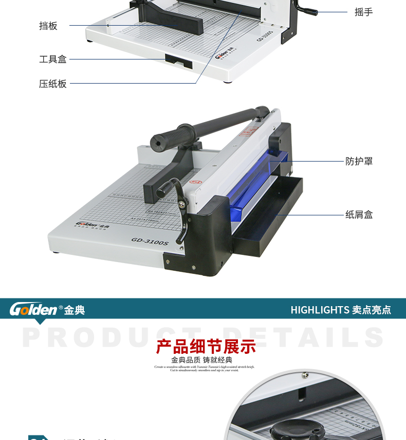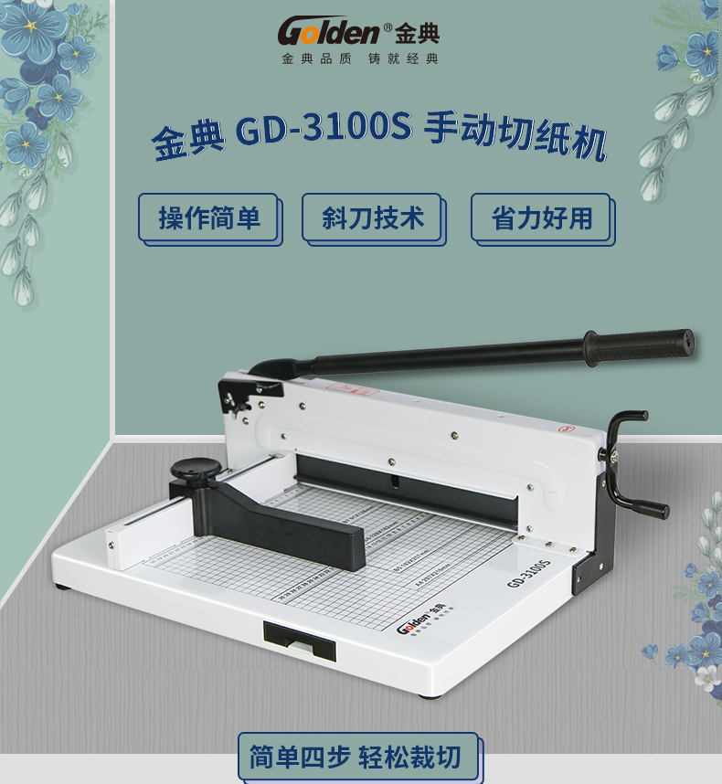 - 商品名称:金典 GOLDEN GD-3100S切纸机 手动重型裁纸机 A4标书文件书本书籍切纸刀