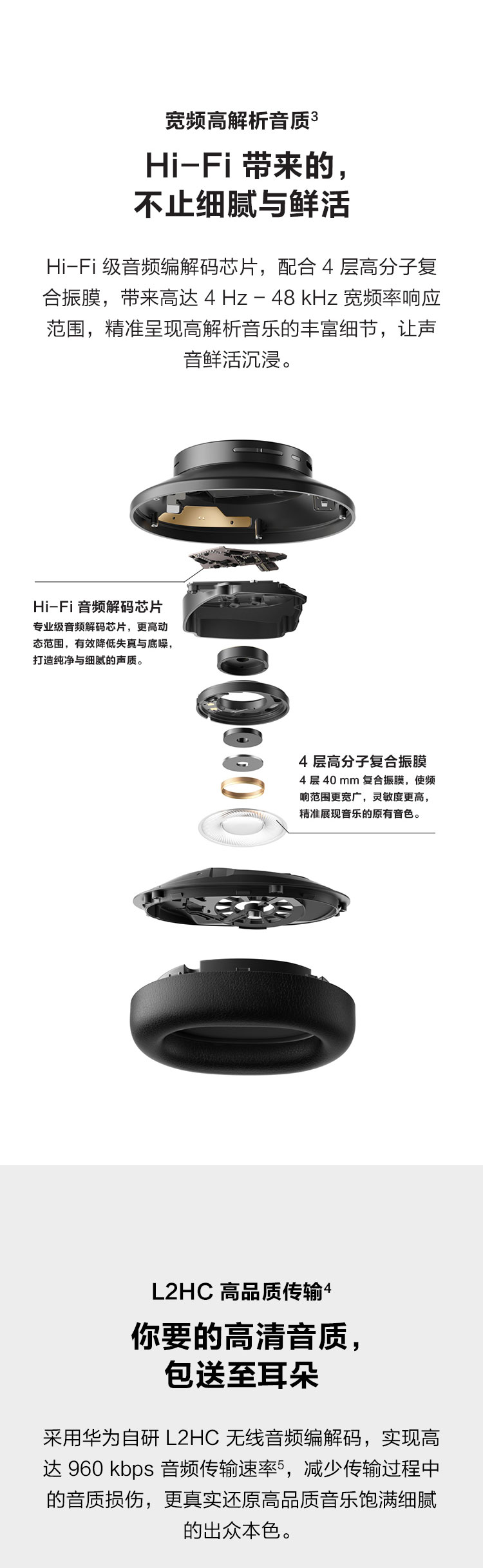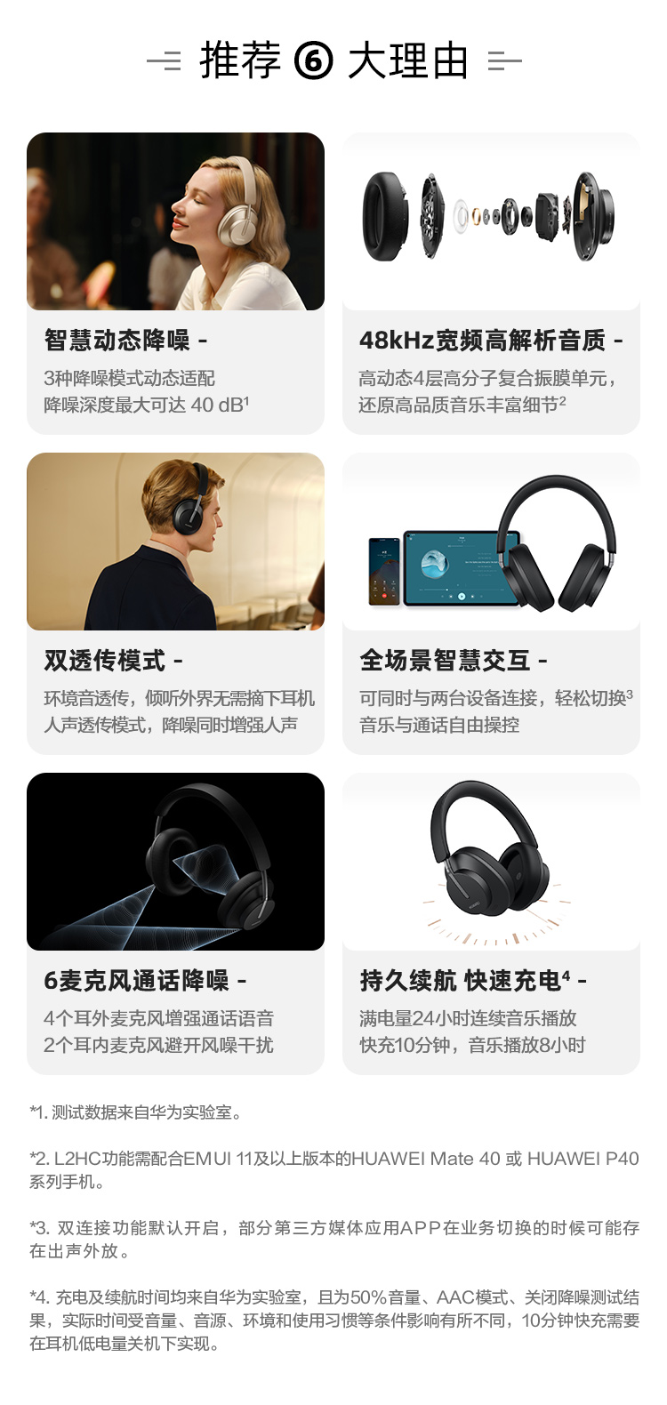 耳机电池容量:410mAh*2颗 类型:锂离子聚合物锂电池。开降噪模式下 音乐播放 20小时;通话时长 15小时,数据来自华为实验室。