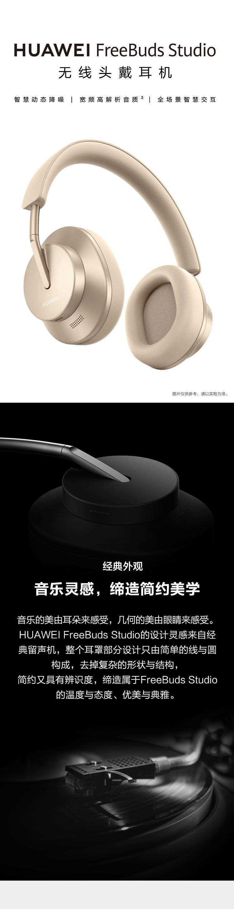 华为HUAWEI FreeBuds Studio无线头戴耳机 智慧动态降噪 宽频高解析度无线降噪耳机 蓝牙耳机 晨曦金