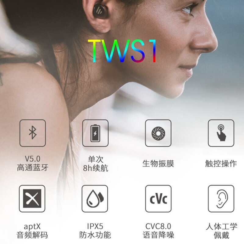 - 商品名称:漫步者(EDIFIER)TWS1 真无线蓝牙耳机 迷你隐形运动手机耳机 通用苹果华为小米手机 黑色