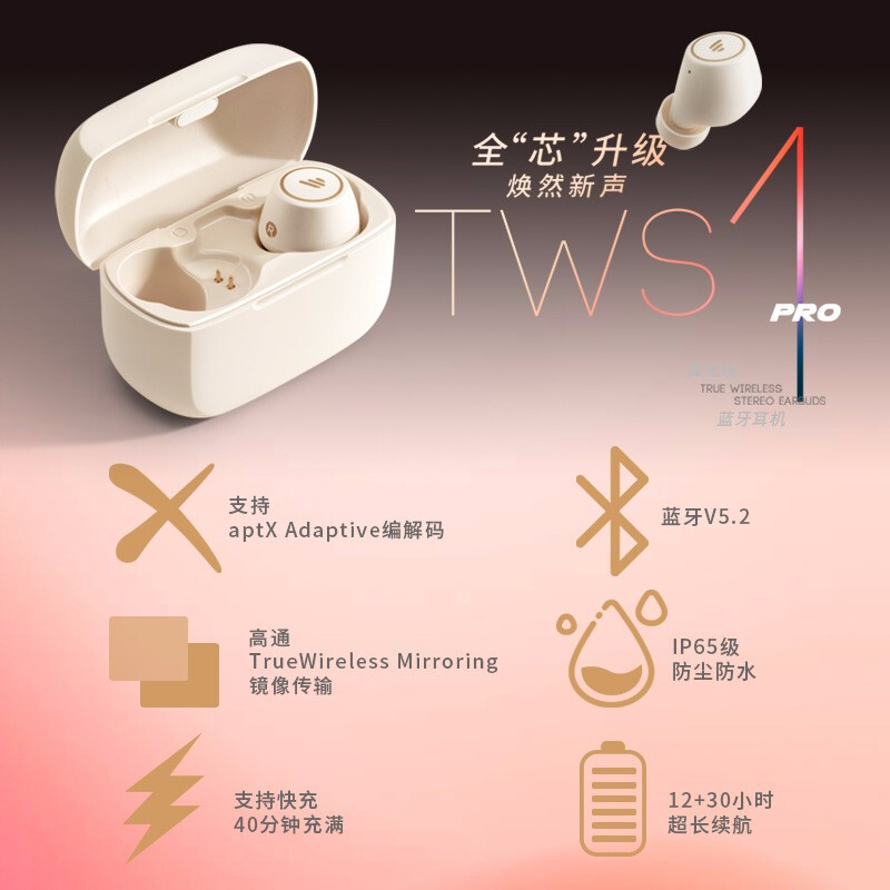 - 商品名称:漫步者(EDIFIER)TWS1 Pro 真无线蓝牙耳机 迷你隐形运动手机耳机 通用苹果华为小米手机 云白色