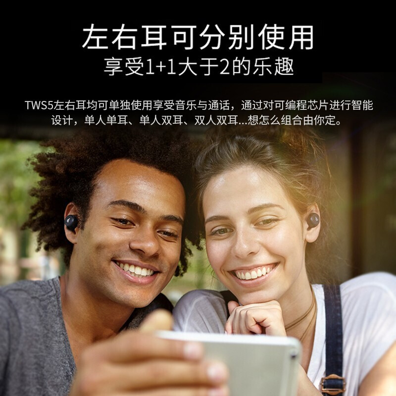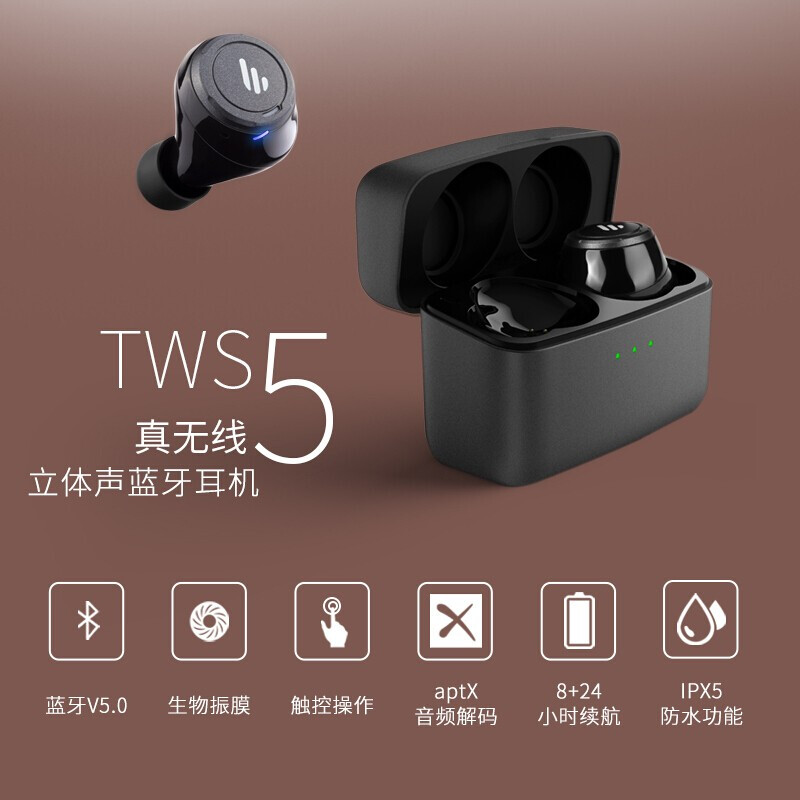 - 商品名称:漫步者(EDIFIER)TWS5 真无线蓝牙耳机 运动耳机 迷你入耳式手机耳机 通用苹果华为小米手机 黑色