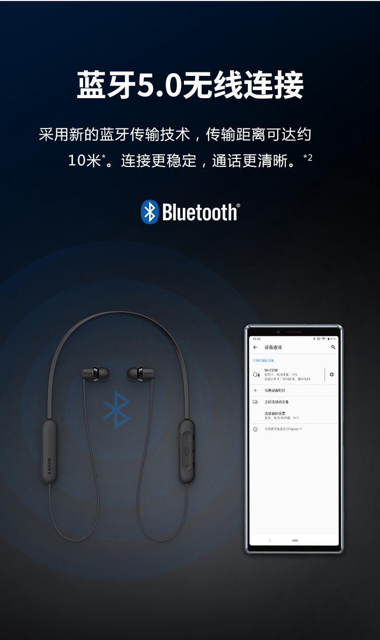 - 商品名称:索尼(SONY) WI-C200 无线入耳式立体声耳机 手机耳机 颈挂线控 黑色