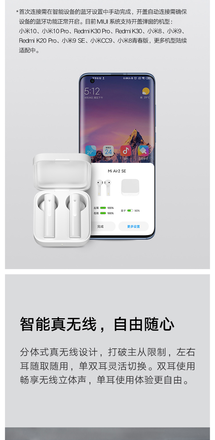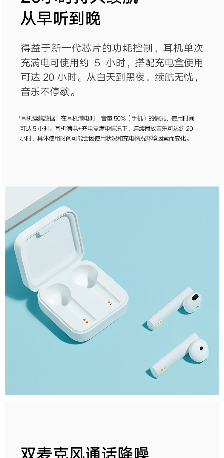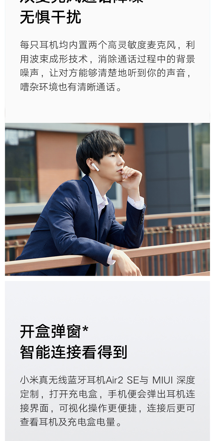 商品名称:小米 Air2 SE真无线蓝牙耳机 通话降噪 蓝牙耳机 迷你入耳式手机耳机