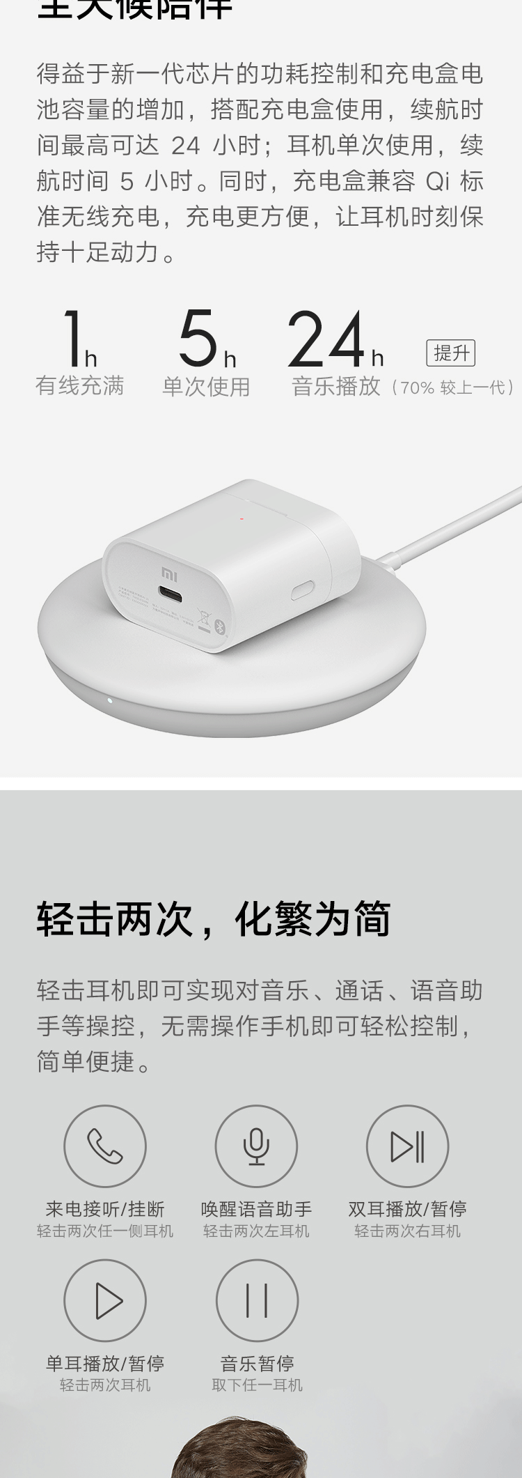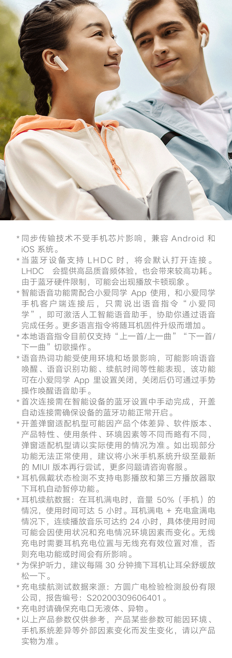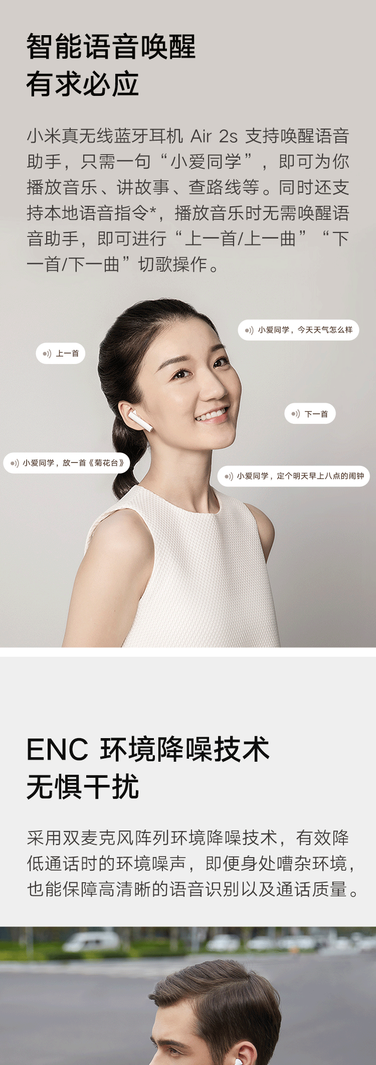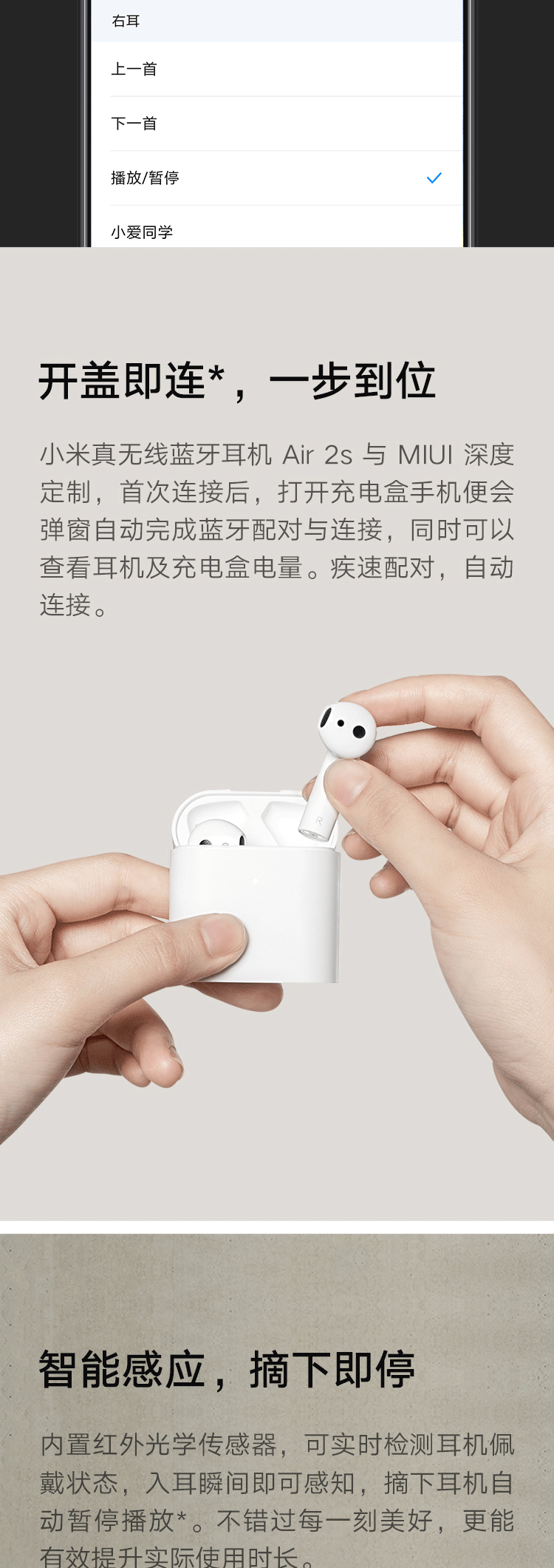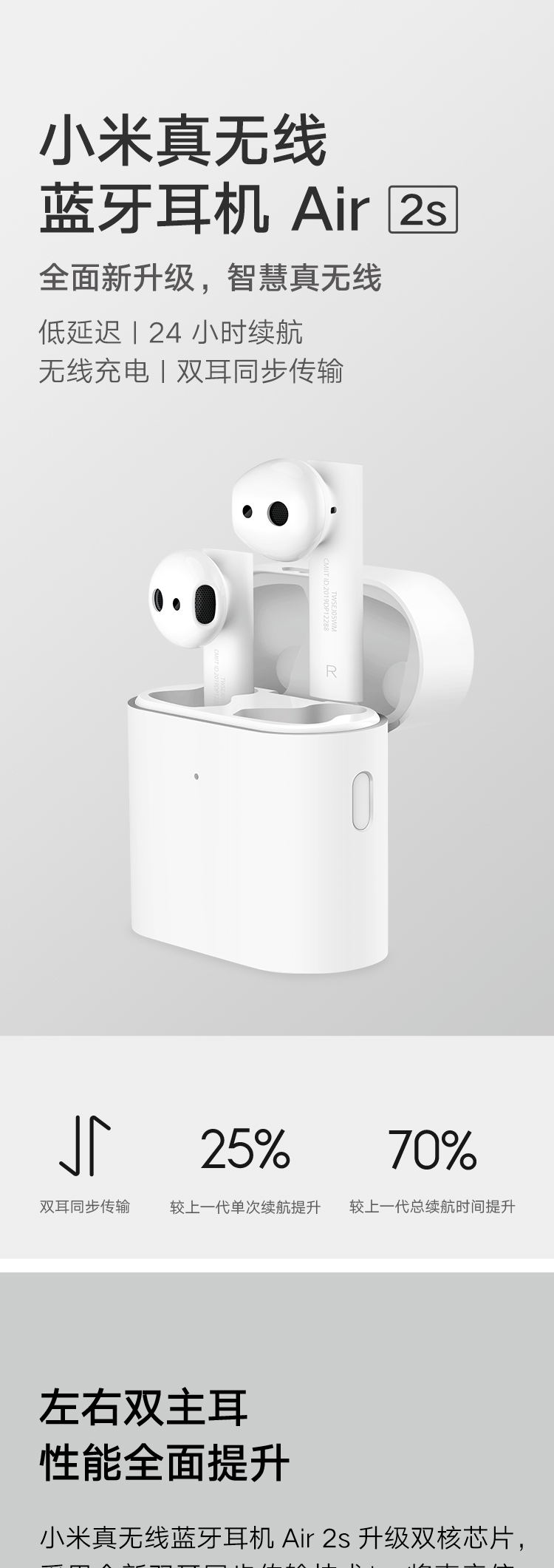 商品名称:小米蓝牙耳机 Air2S 蓝牙耳机 通话降噪 真无线蓝牙耳机 无线充电 迷你入耳式手机耳机