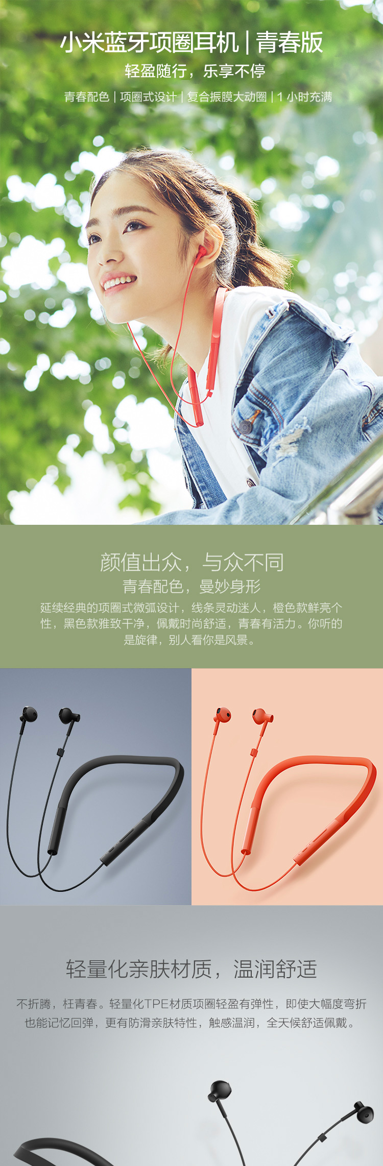 商品名称:小米蓝牙项圈耳机青春版 手机耳机运动耳机通话耳机蓝牙耳机 黑色